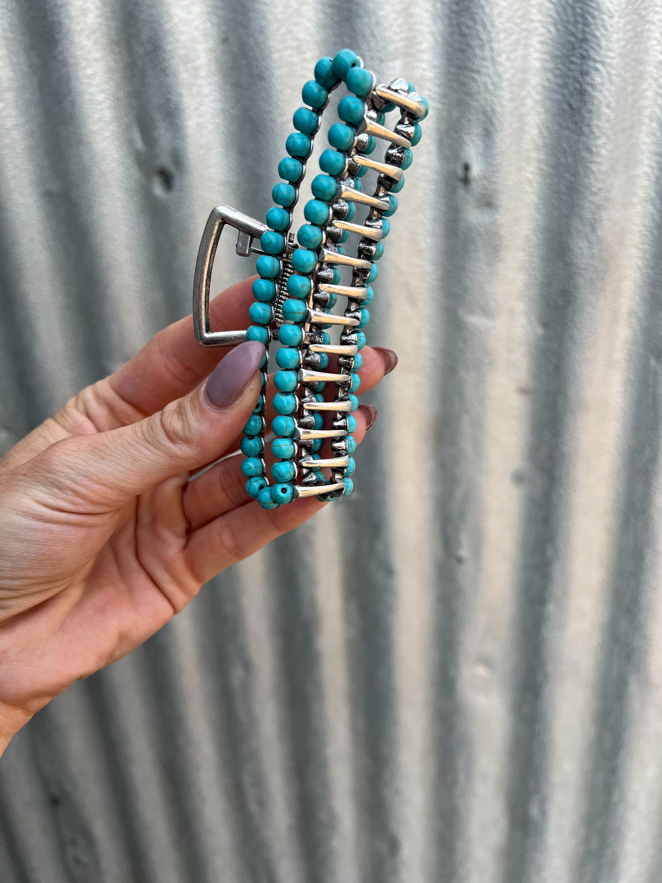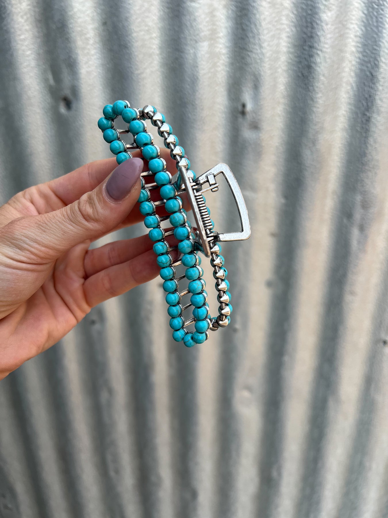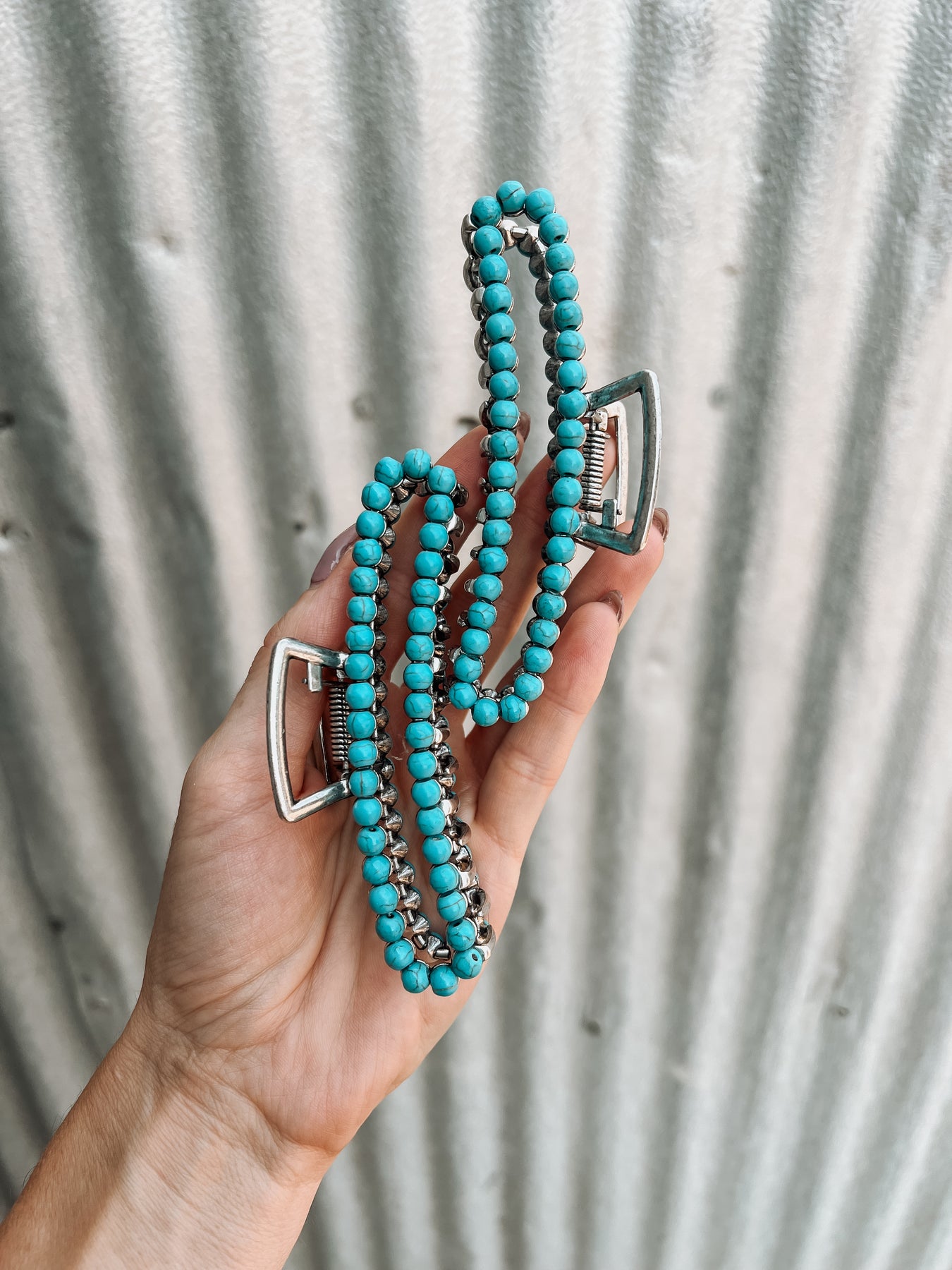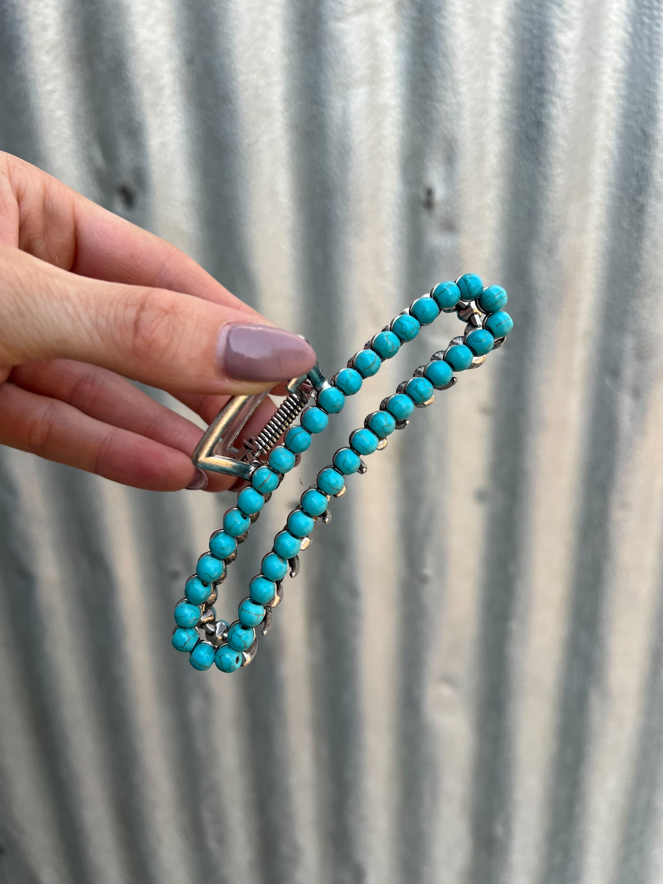 Square Navajo Pearl Claw Clip - Turquoise