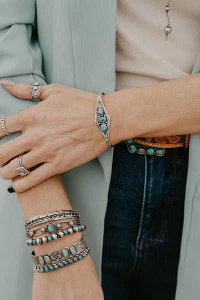 Here is where you will find all one-of-a-kind authentic turquoise jewelry pieces. Navajo made and sterling silver. These are timeless pieces that can be passed down from generation to generation. Each piece is different from the one next to it with each turquoise stone possessing it's own set of unique characteristics.