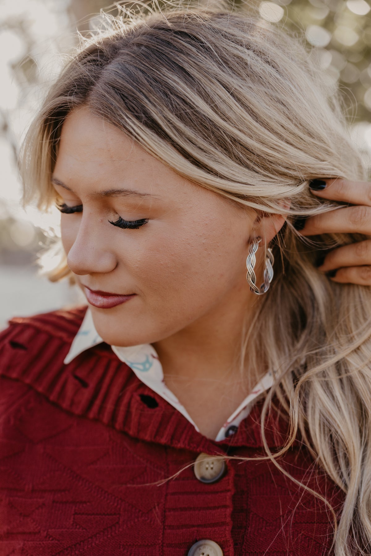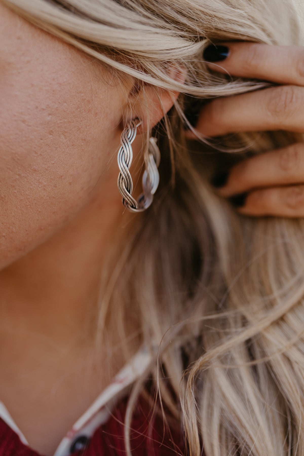 Sterling silver hoop earring with etched detail on the hoop. Lightweight and comfortable to wear.