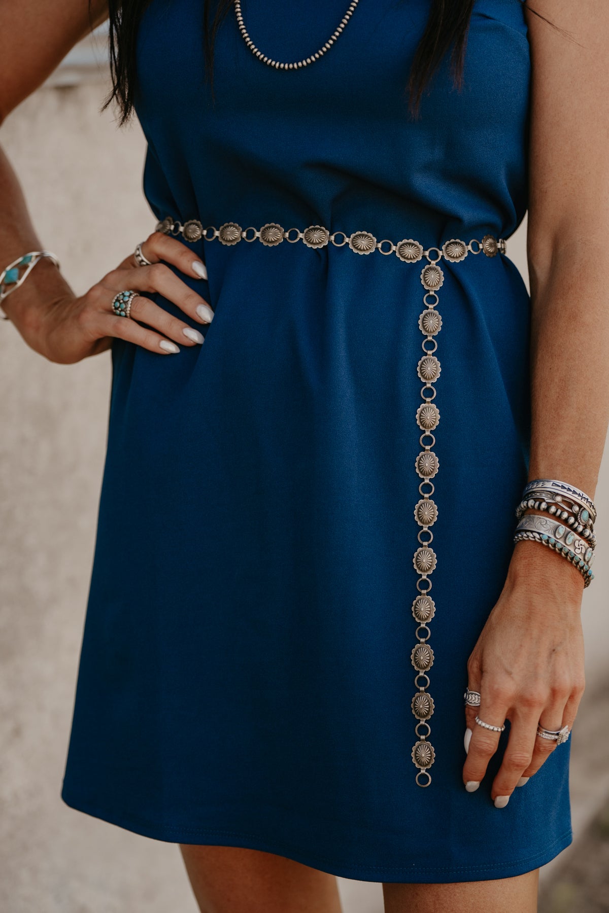 Measures (end to end) : 42" so it can easily fit any size. Wear high-waist or low across your hips, the belt is very versatile.