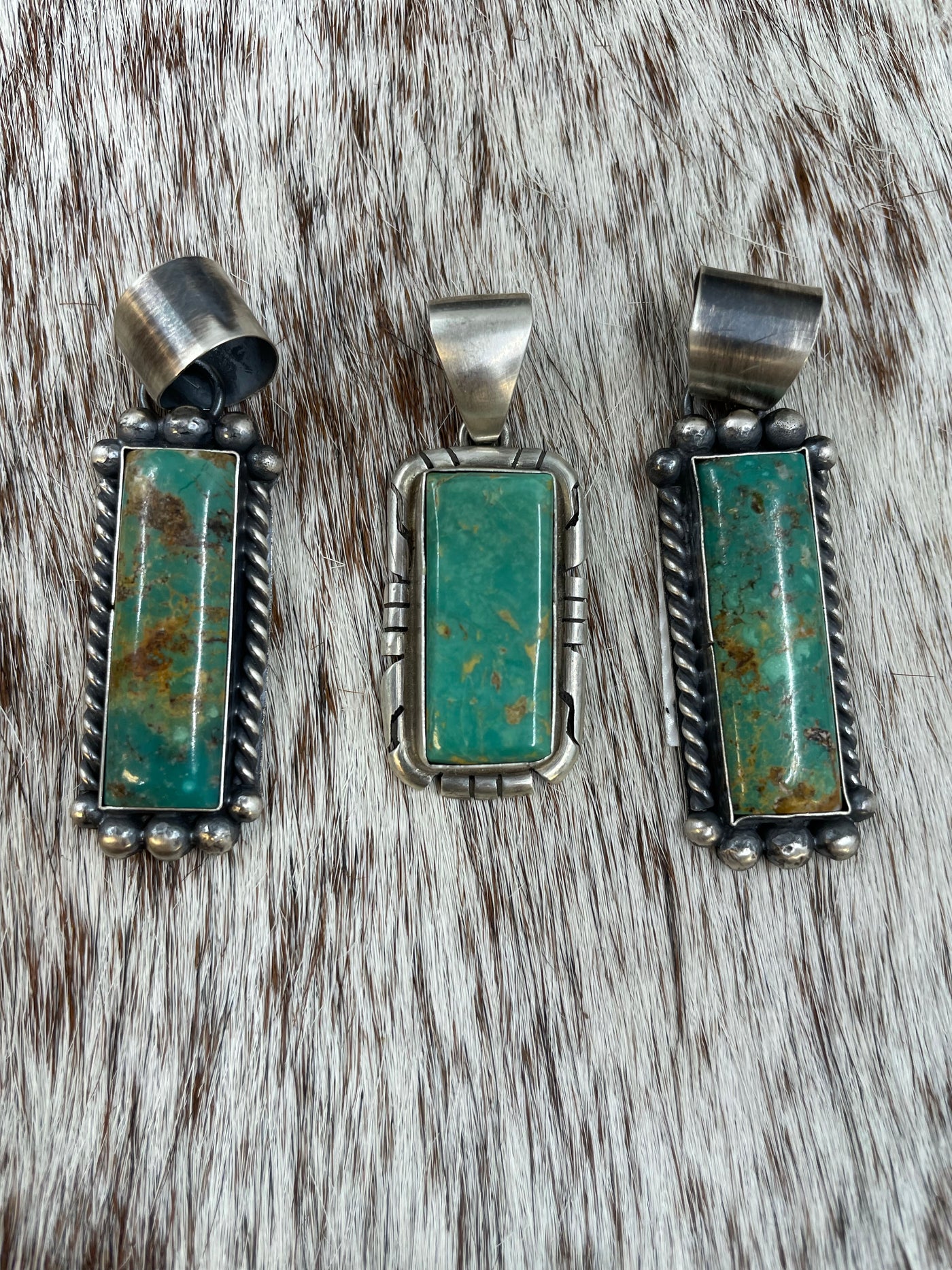 Turquoise pendant necklaces that can fit up to 5MM Navajo pearls or your favorite chain.