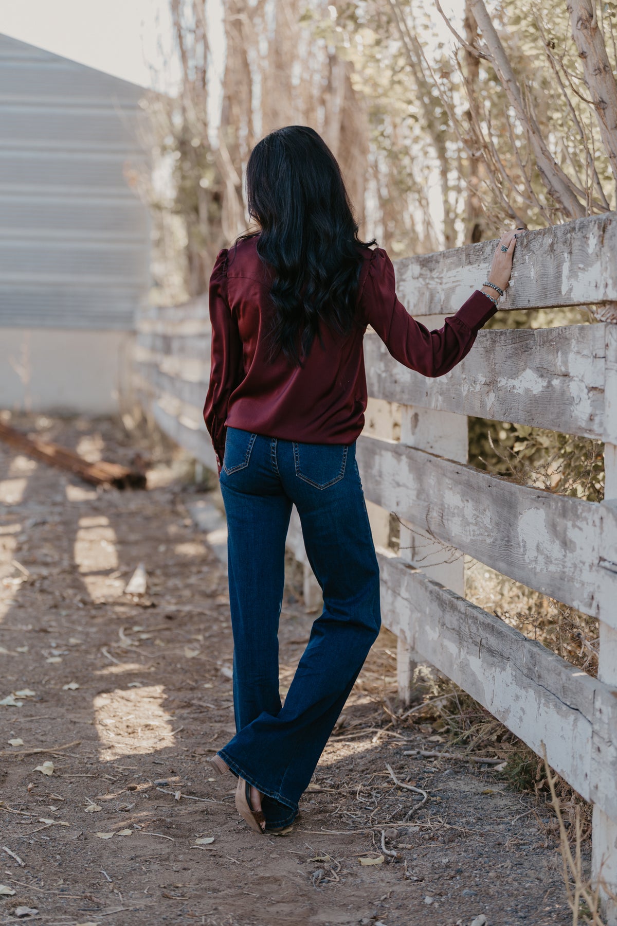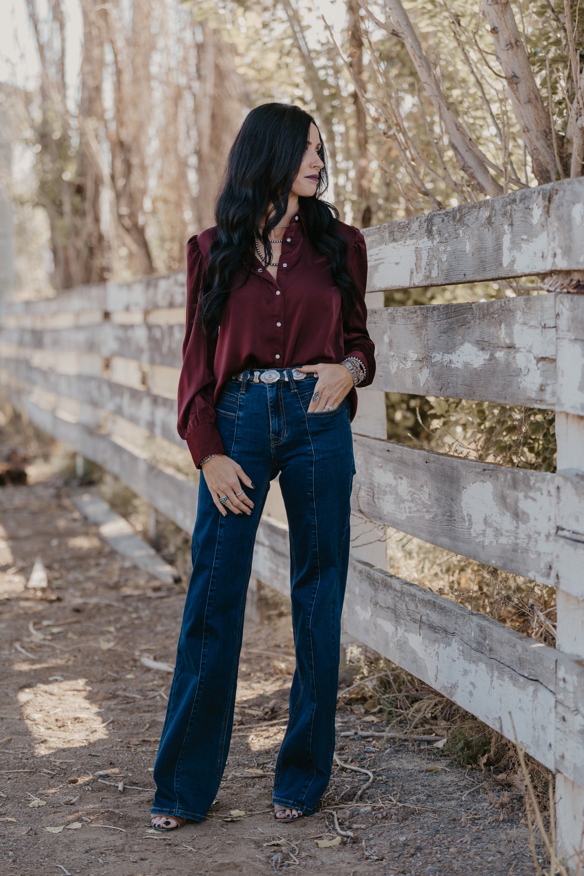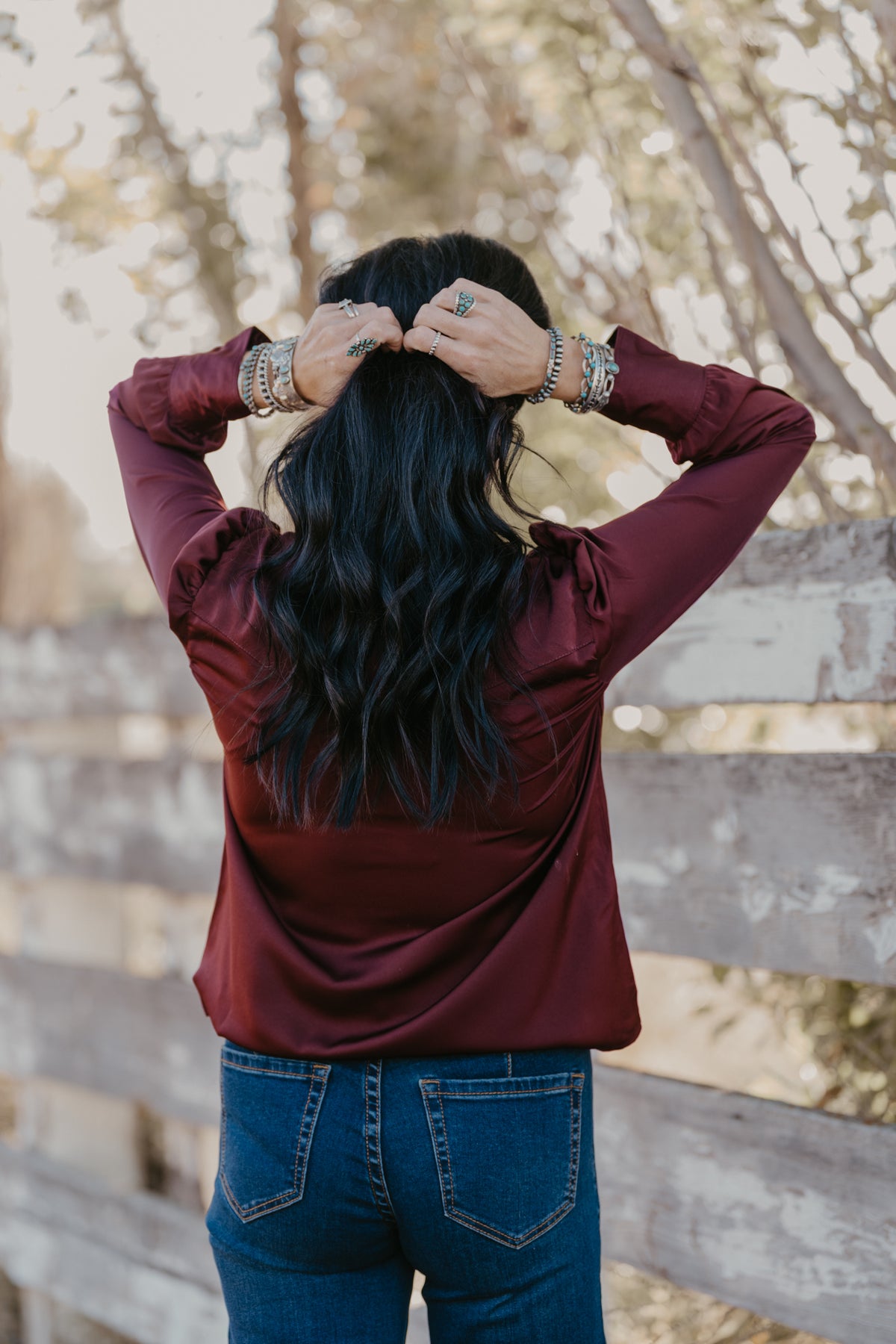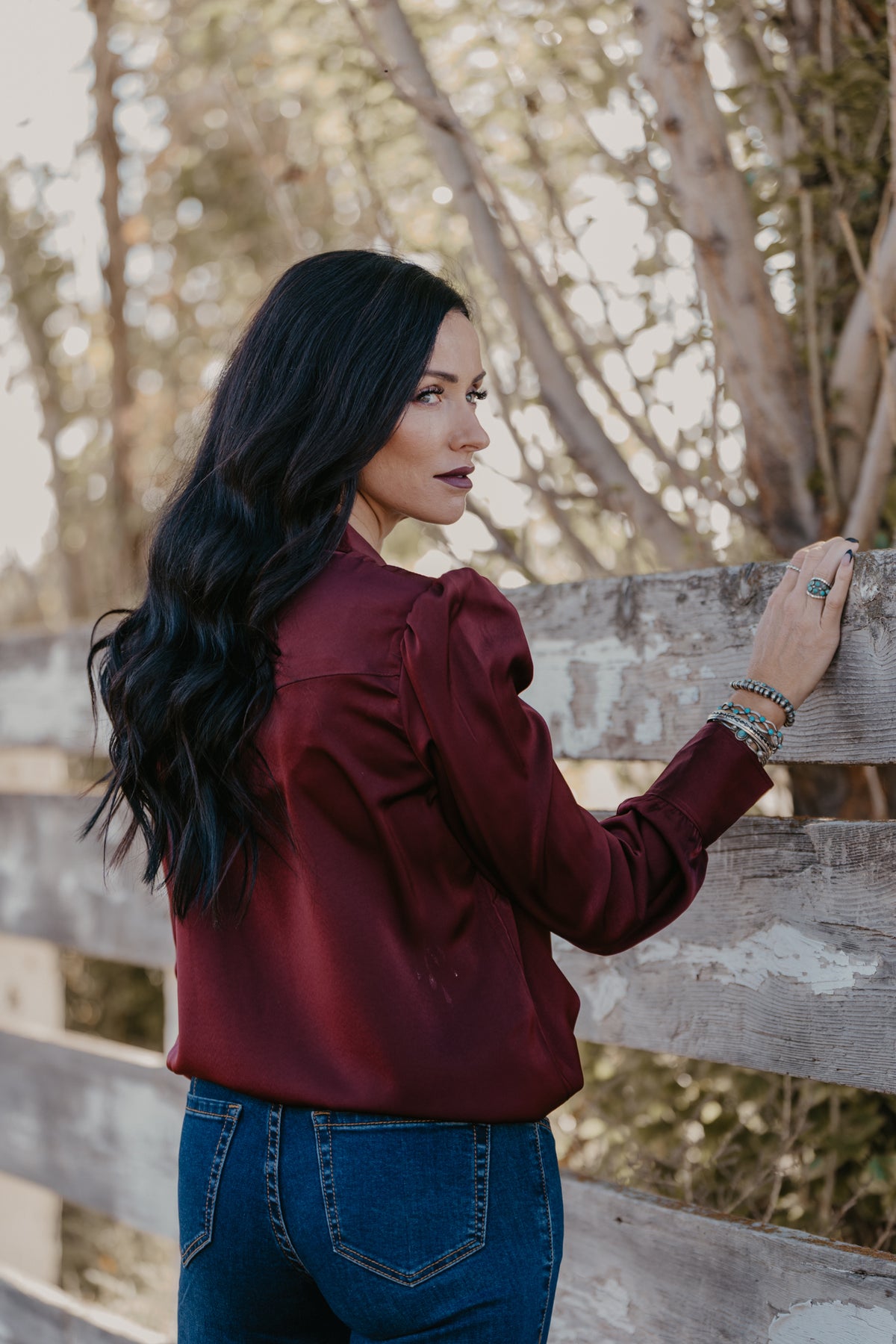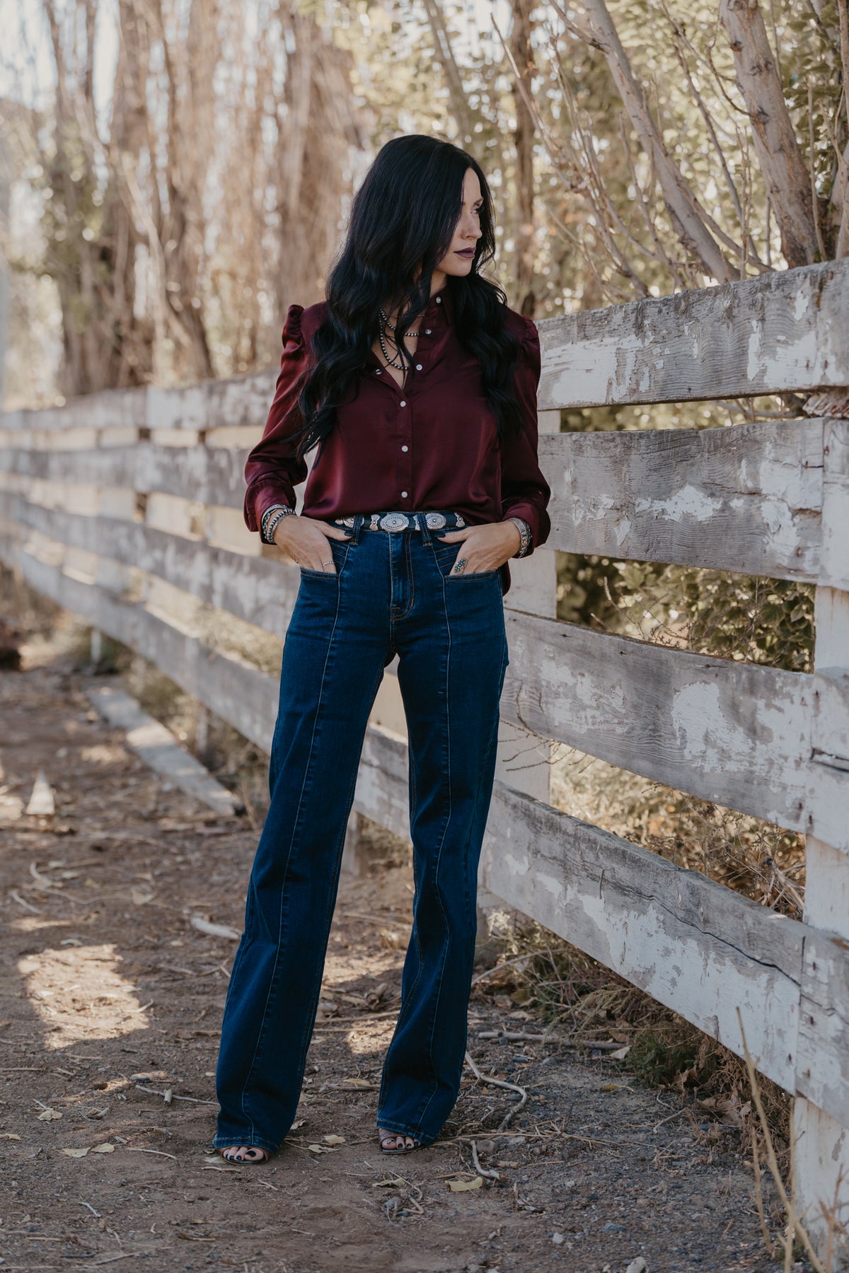 Add standout shimmer and shine to your look with this satin rodeo blouse with a retro vibe. Silky soft, the fabric caresses your skin. Pearlized buttons add even more polish. A fancy front yoke and spread collar combine for authentic Western beauty.