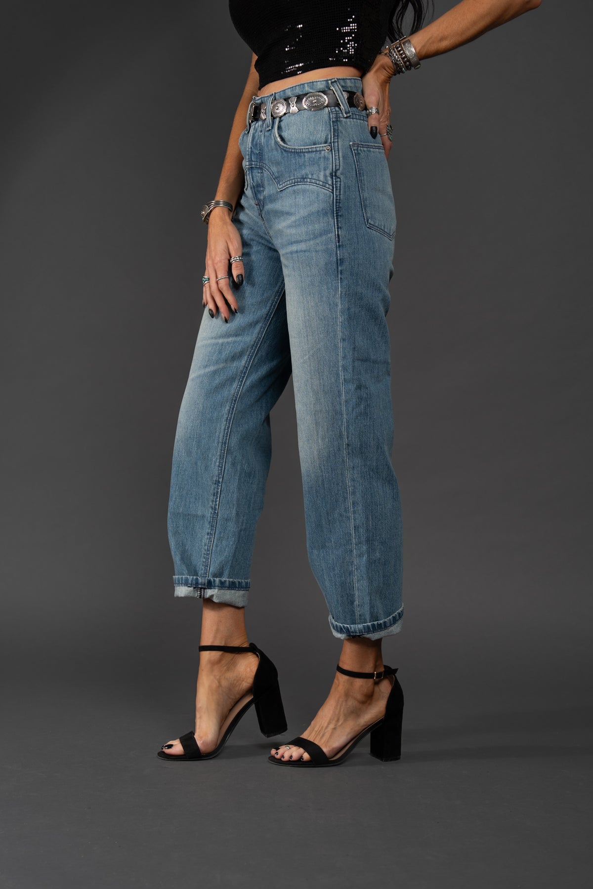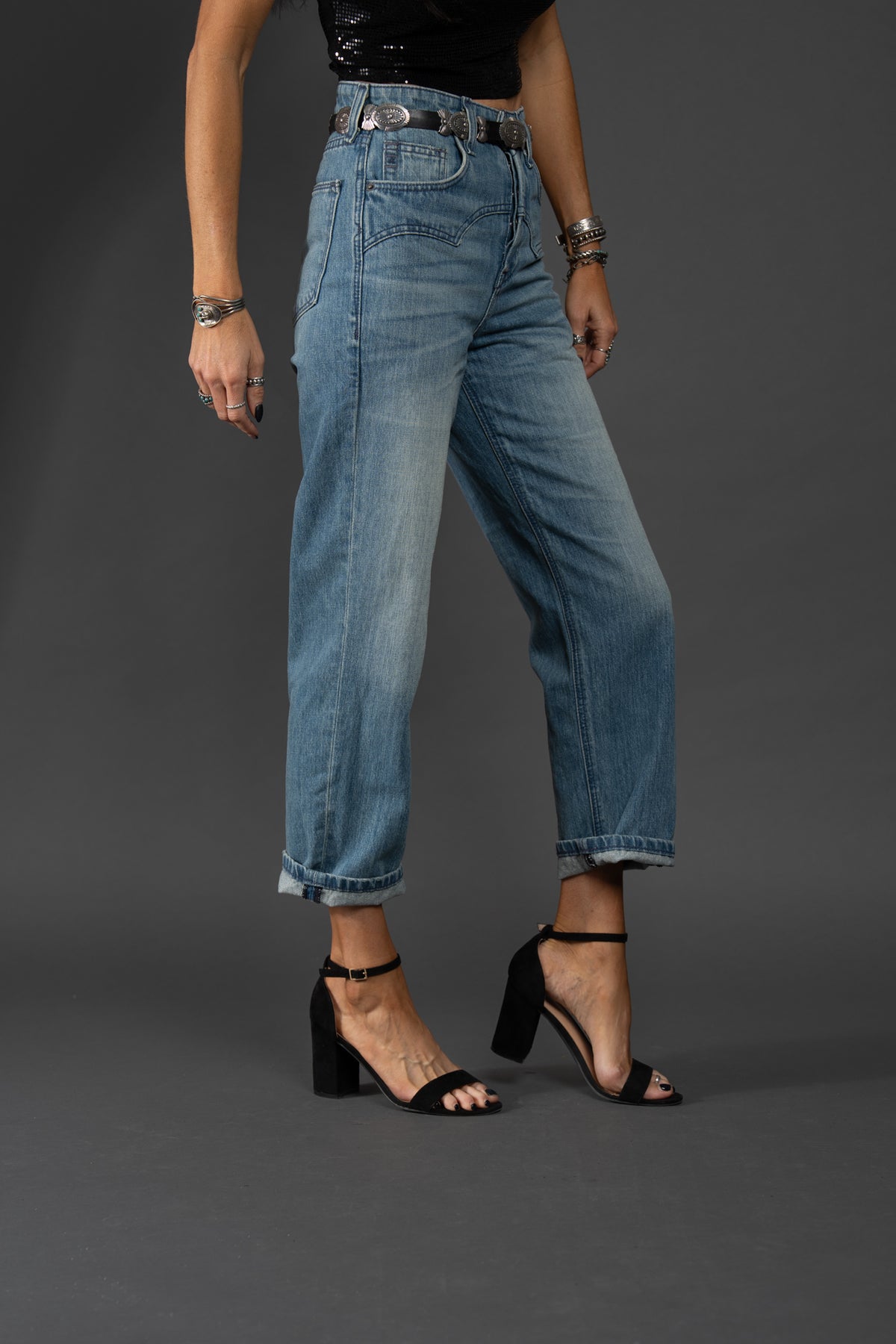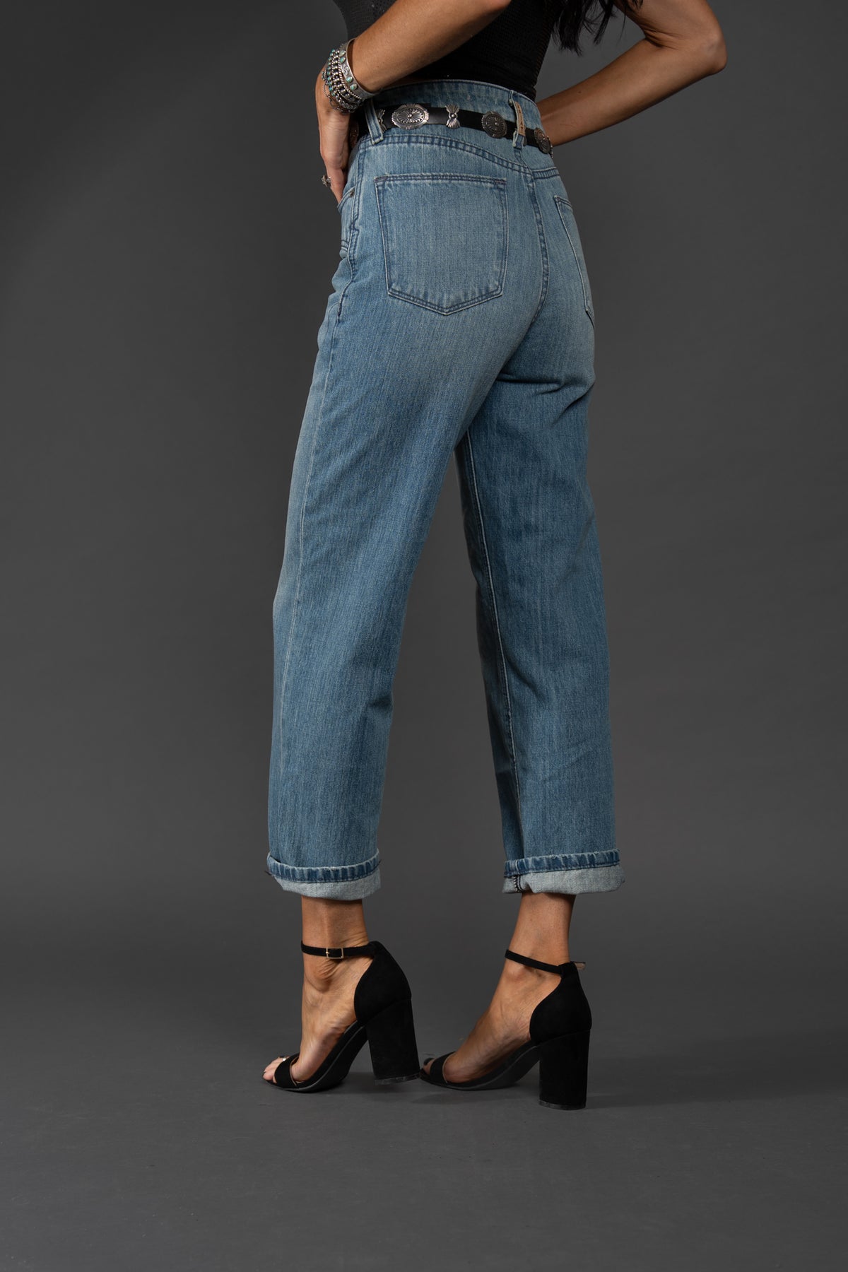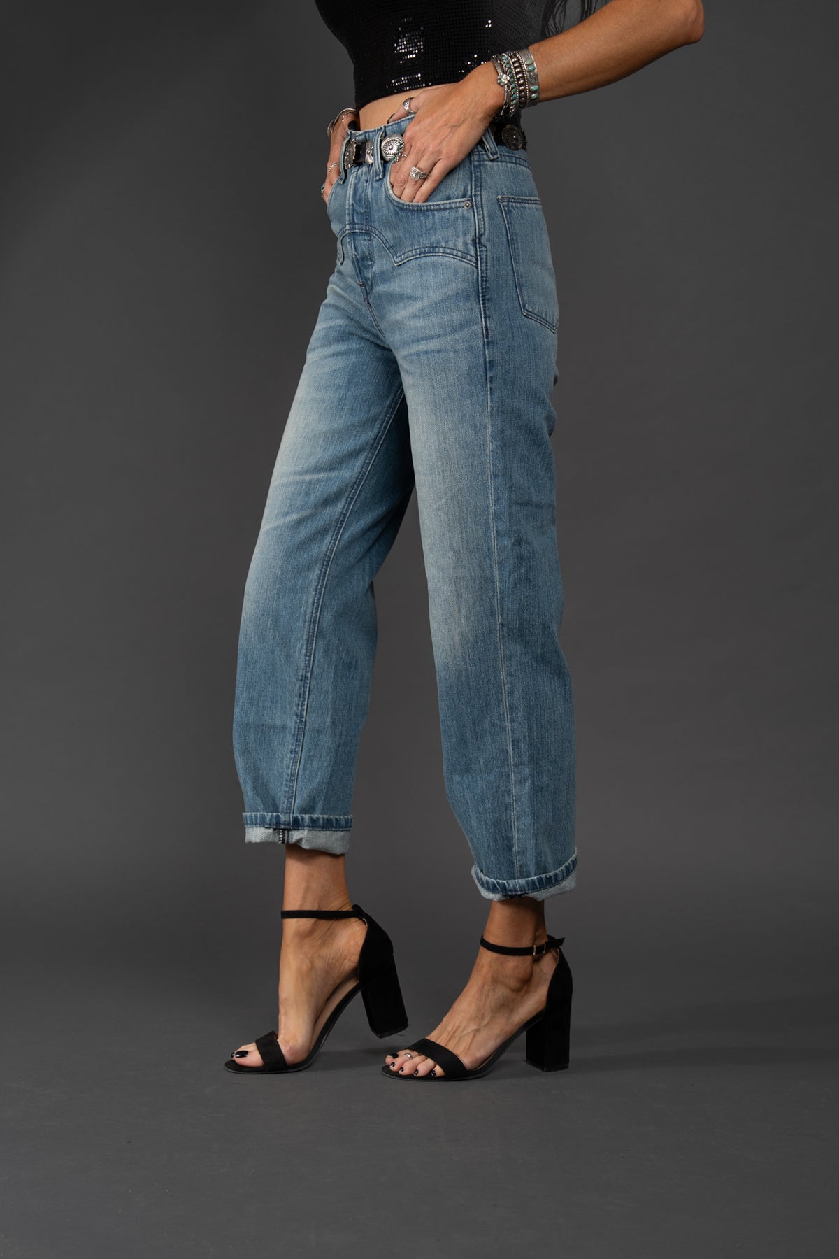 Crafted from non-stretch denim, this jean has all the hallmarks of a coveted vintage pair: an ultra-high rise, an easy straight leg, and a perfectly faded wash. But what really sets it apart is the Western yoke, which adds an on-trend, cowgirl-chic element.