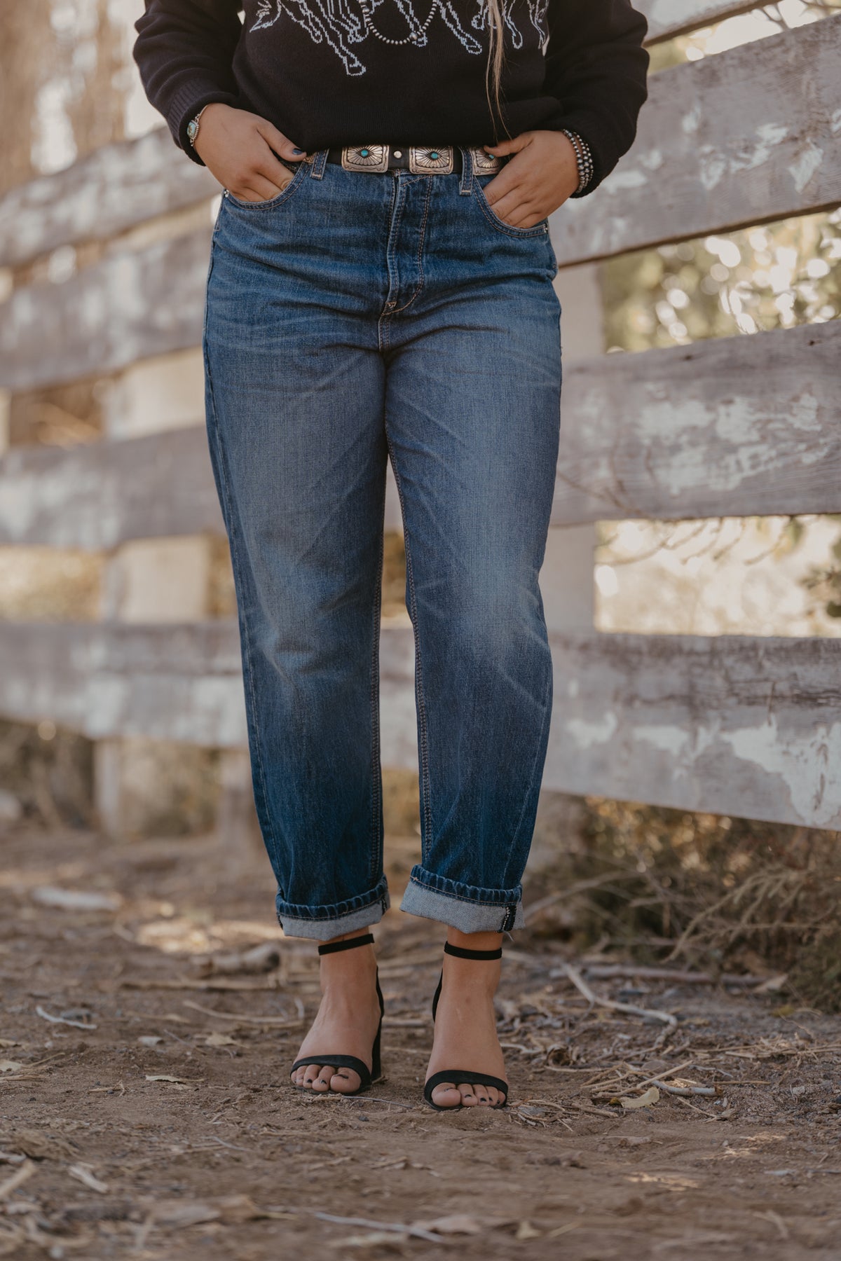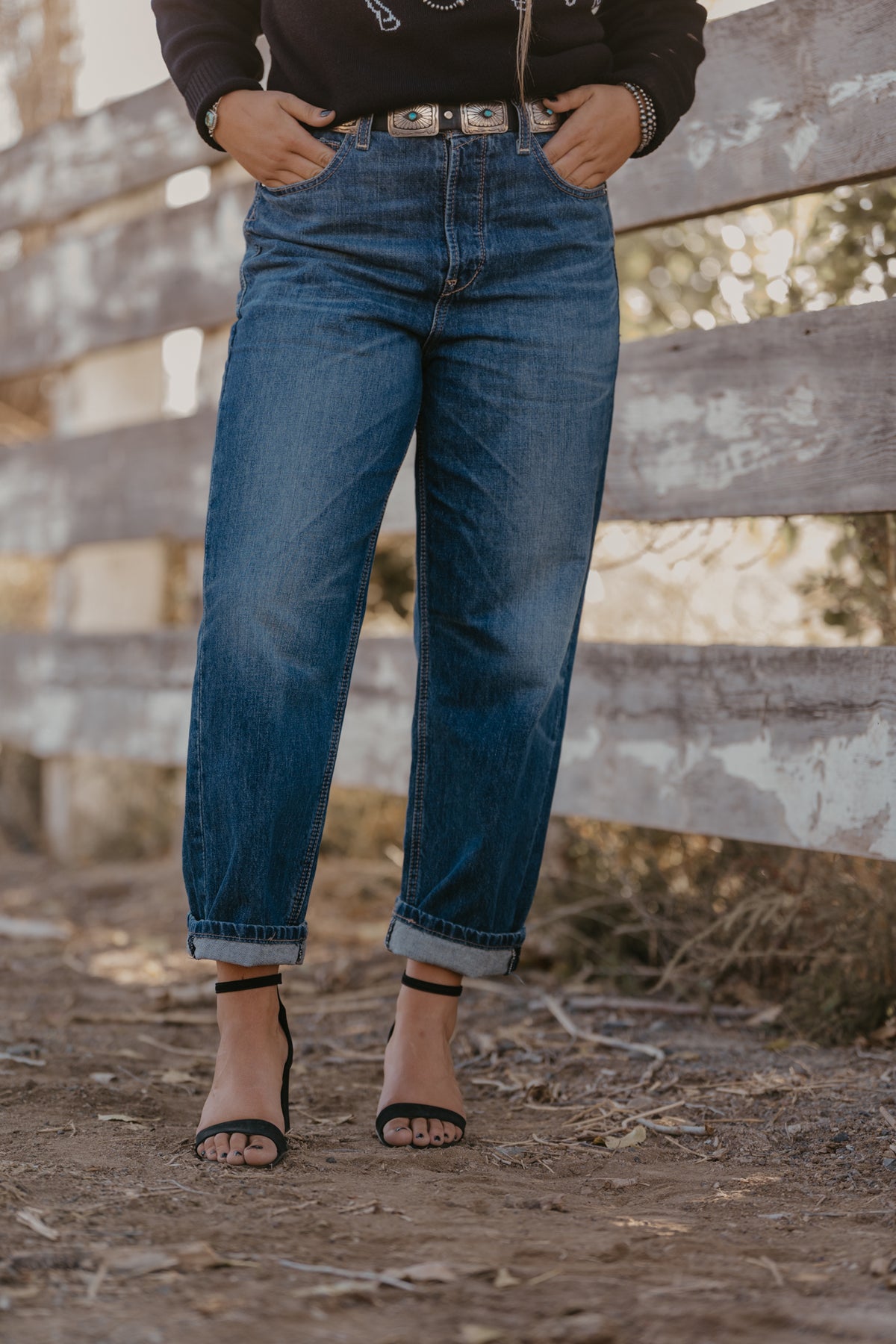 With its versatile silhouette and timeless blue wash, this non-stretch pair will be in your closet for years to come. Tuck it into tall cowboy boots for a festival-ready look, or elevate it with a blazer and Dixons.