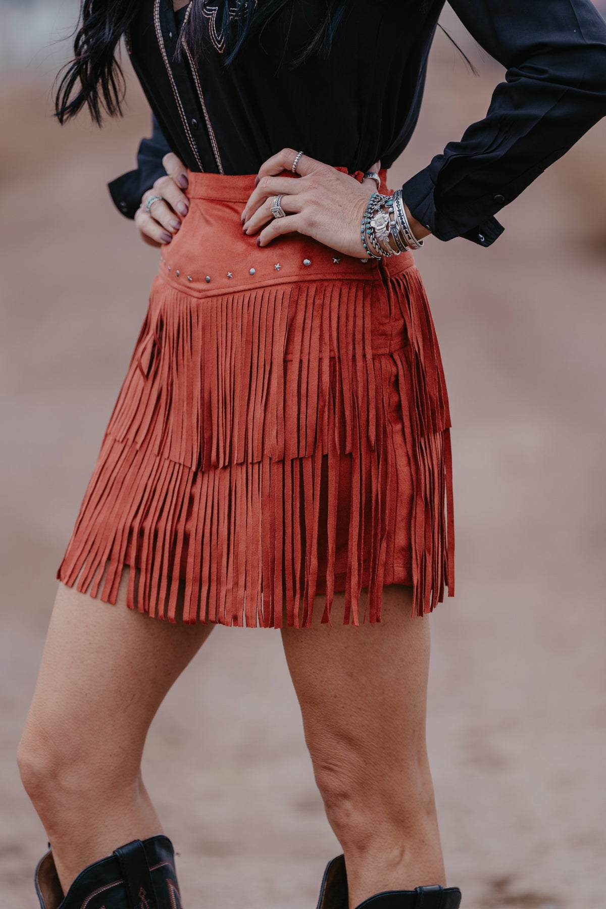 Starlight Fringe Skirt - Rust