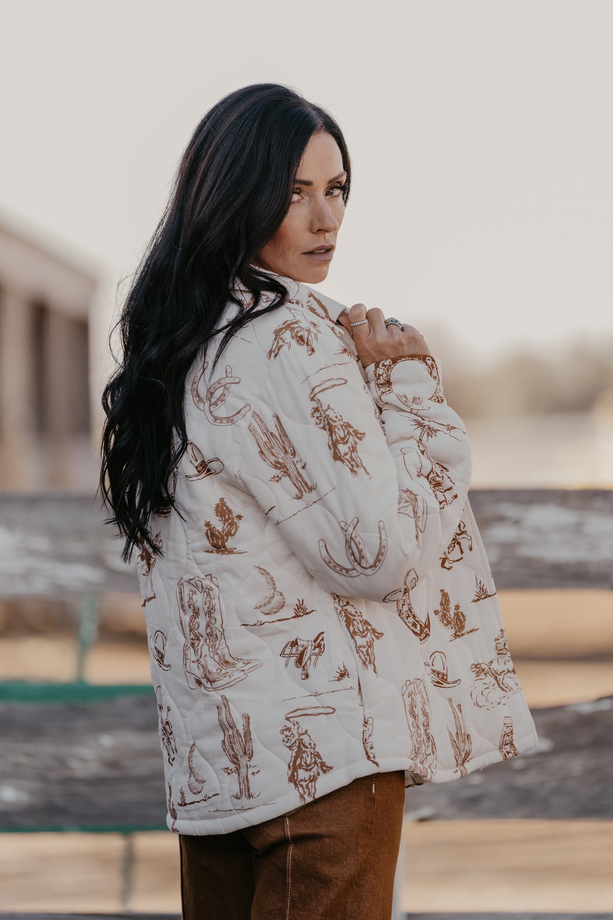 Tis the season for quilted jackets - but make ‘em western! Full button front closure and two side pockets.