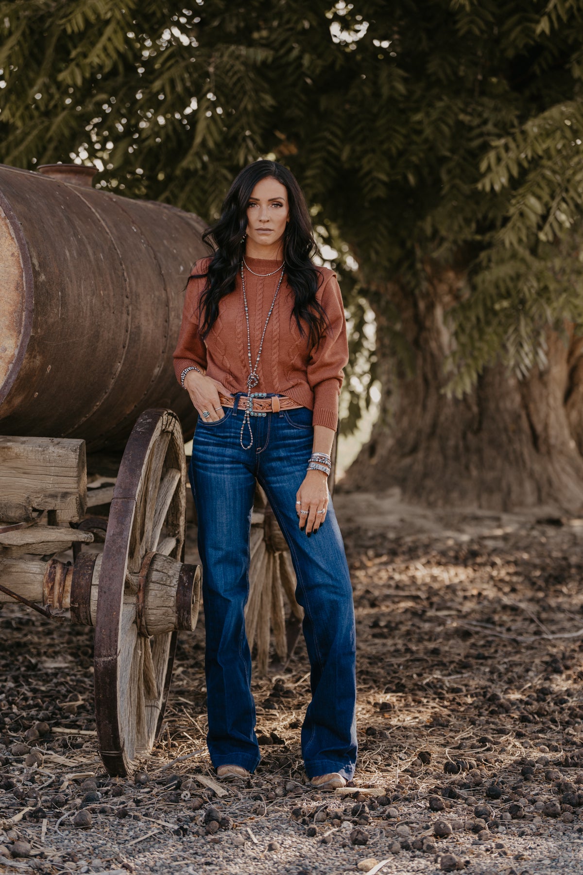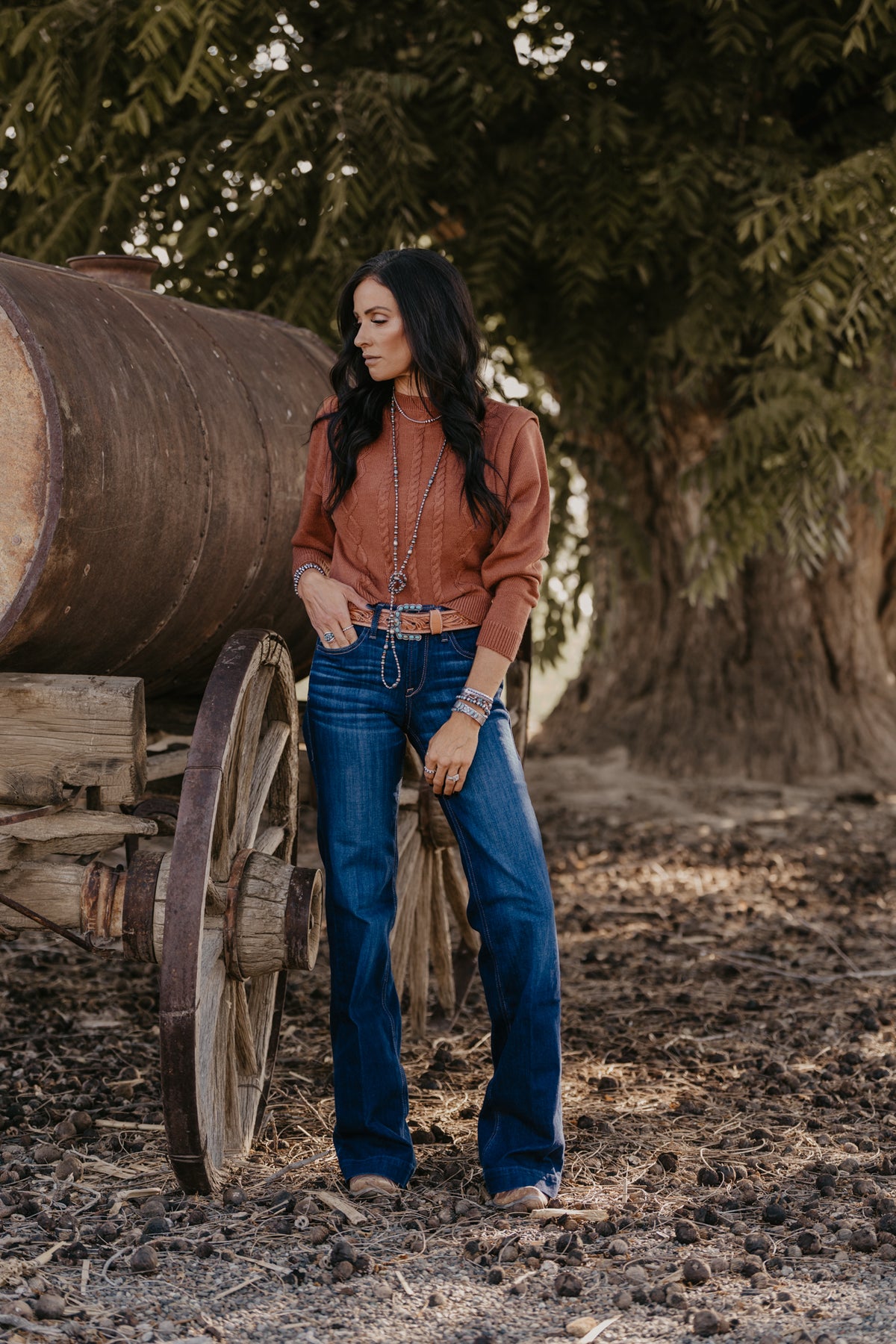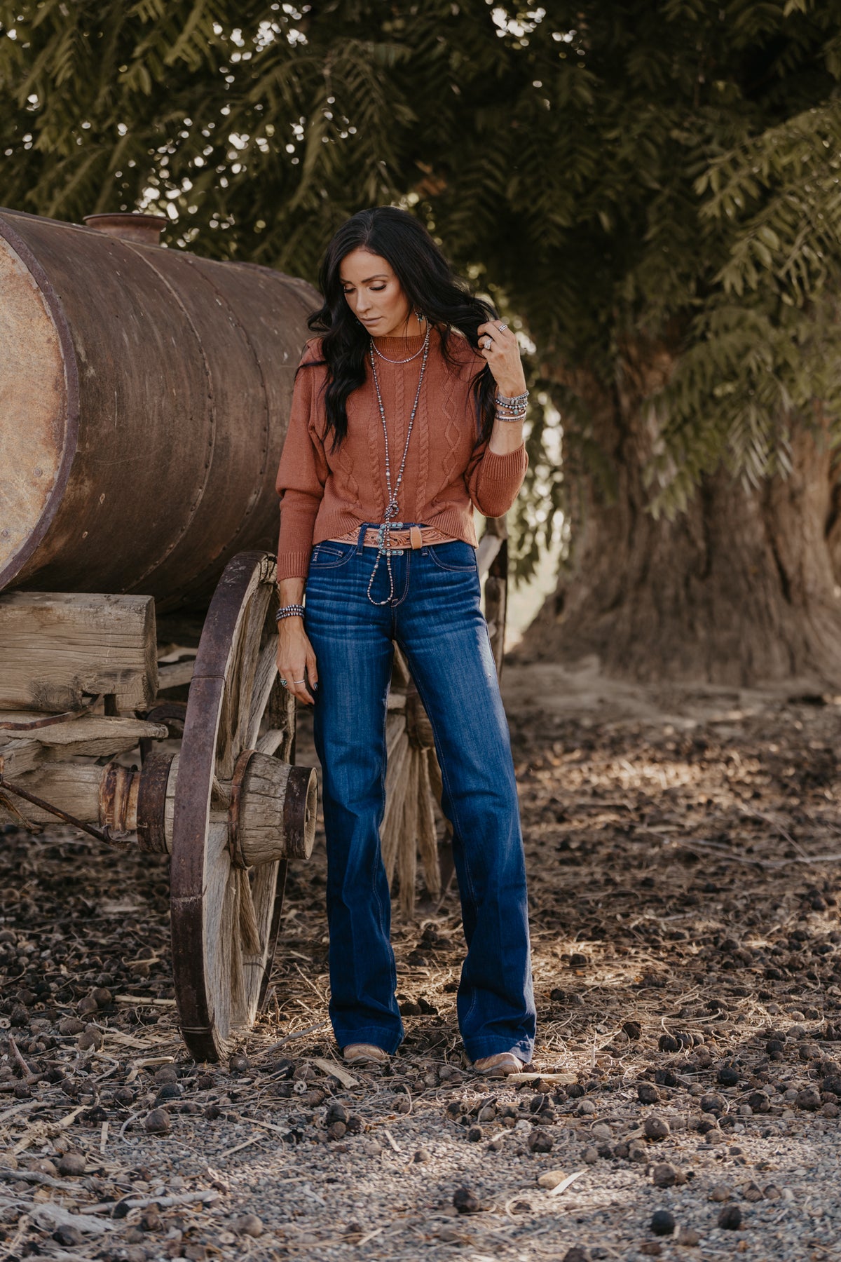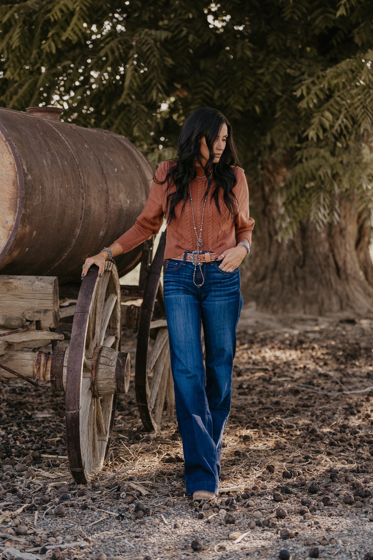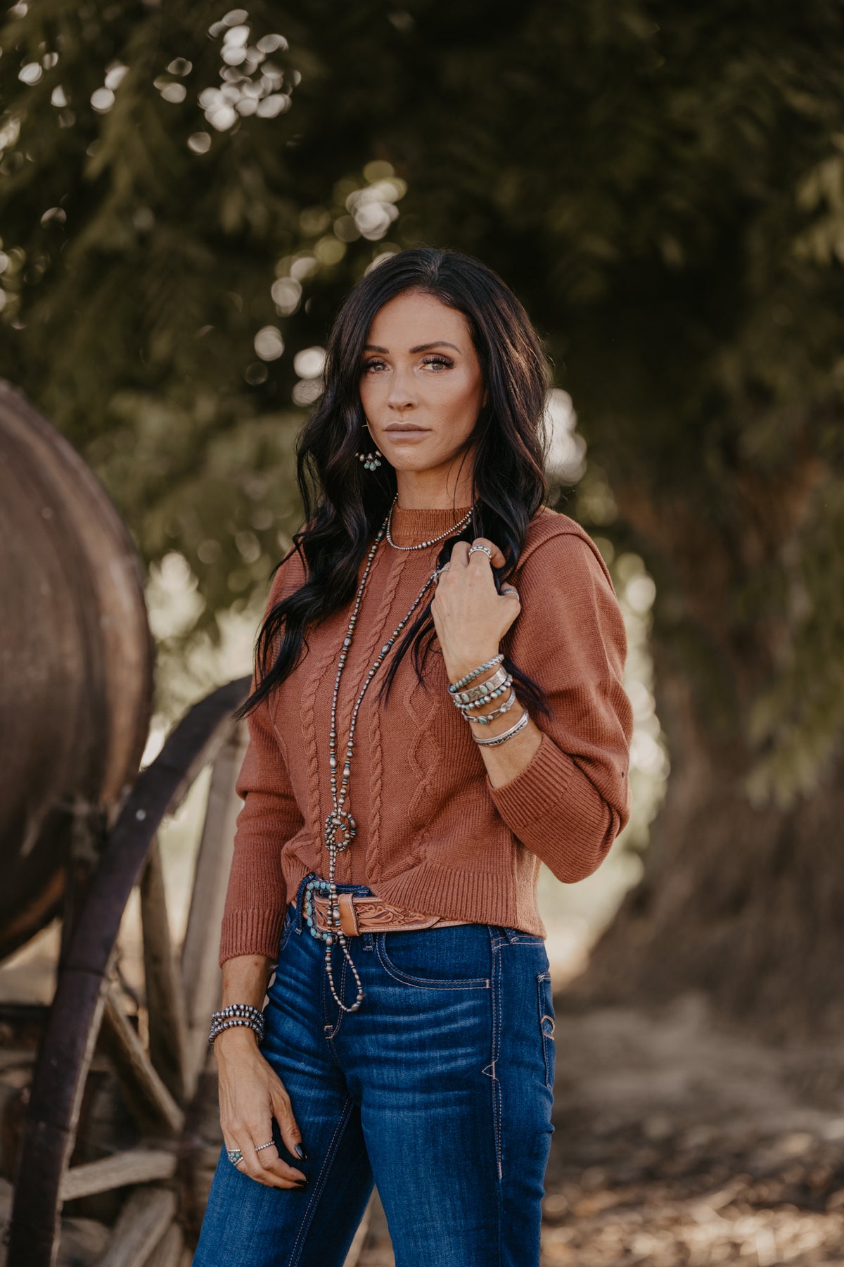 Cable knit sweater in the perfect rust color. Lightweight and runs true to size. Perfect for fall family photos.