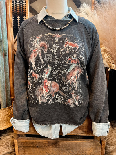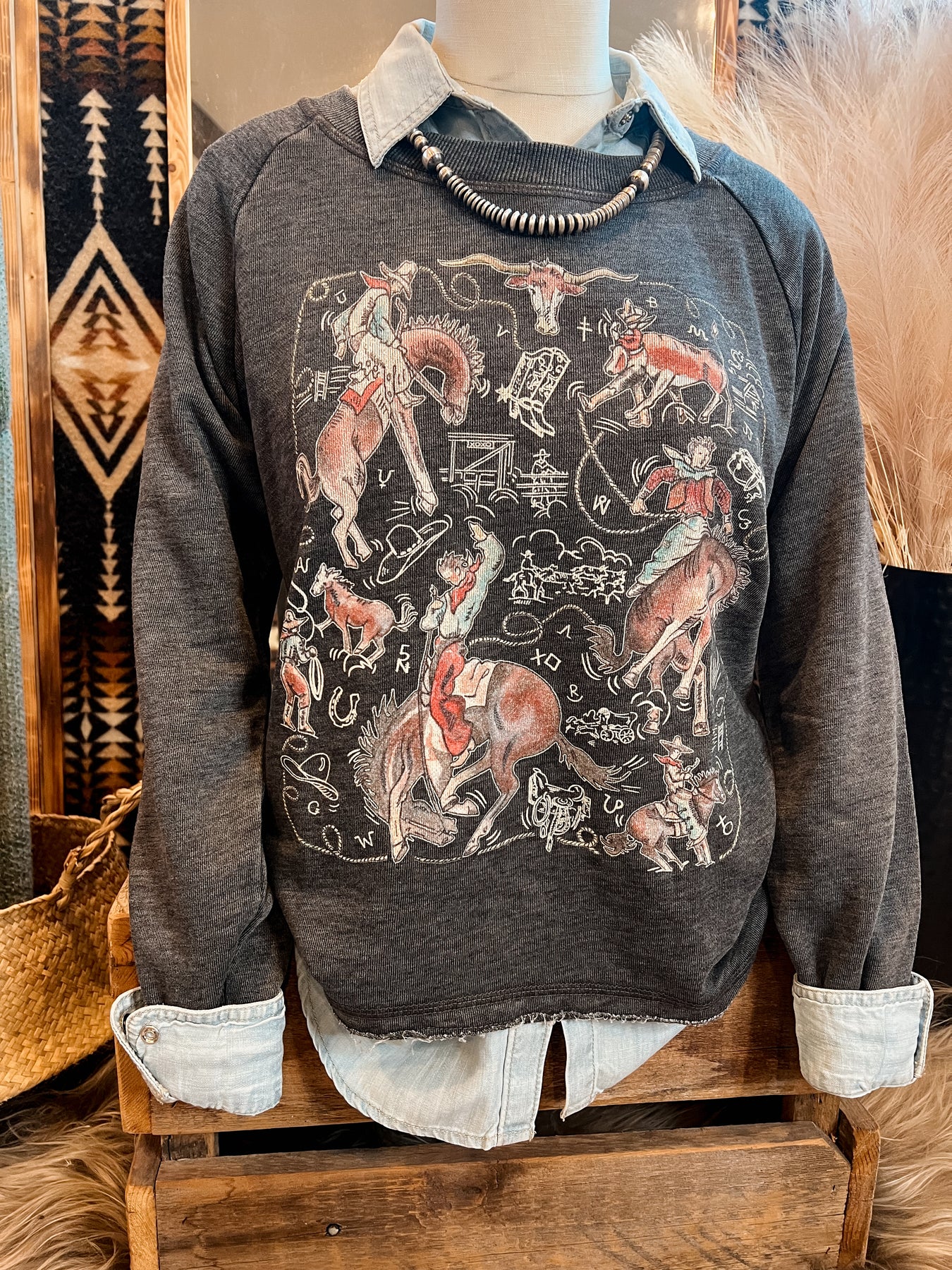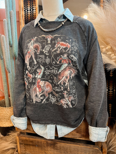 Coming from one of our favorite designers, this graphic sweatshirt has it all. We are swooning over the colors in this graphic. Western to the core.