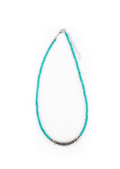 16" Dainty Green Turquoise Beaded Necklace with Silver Disc Accent