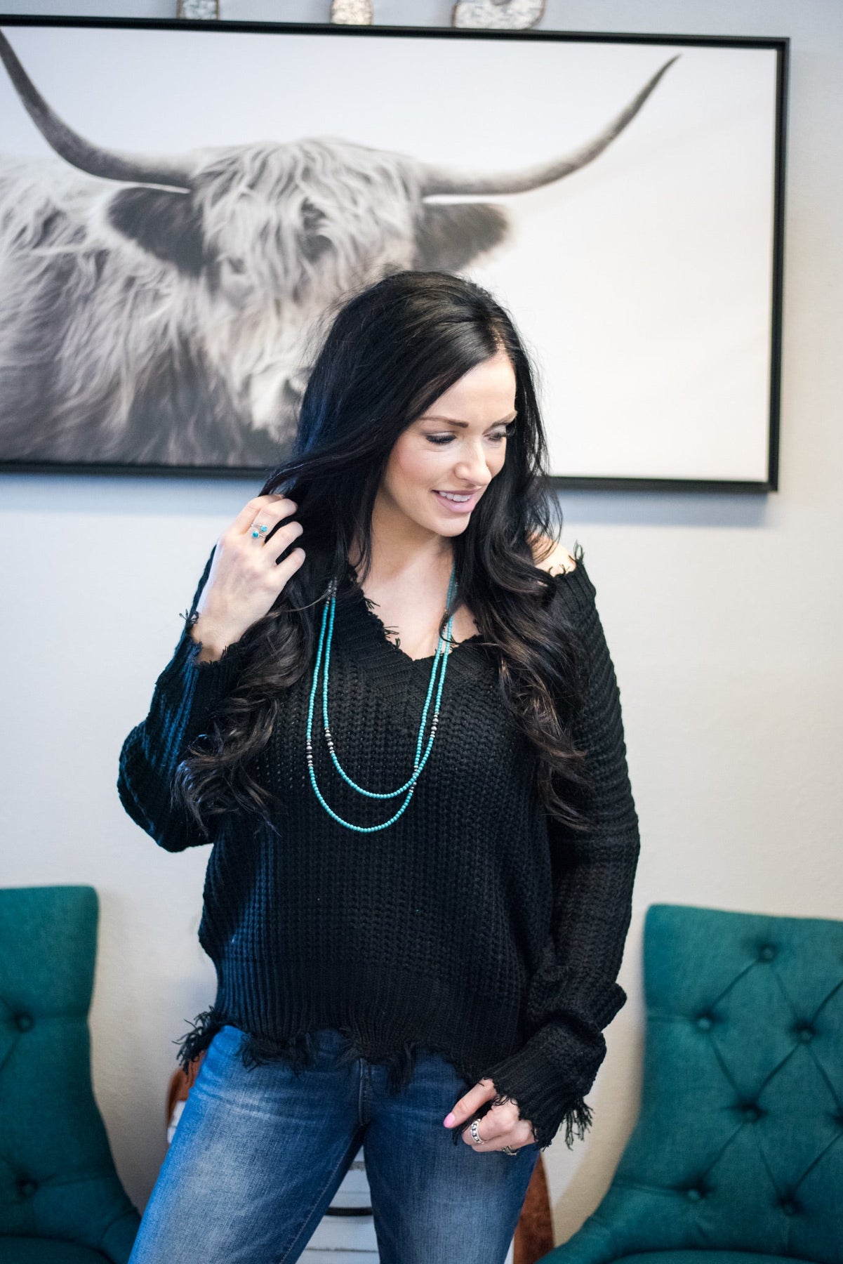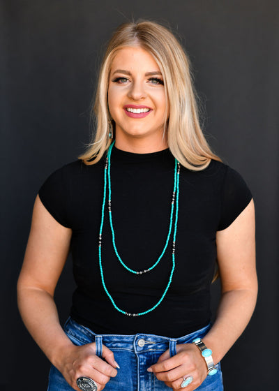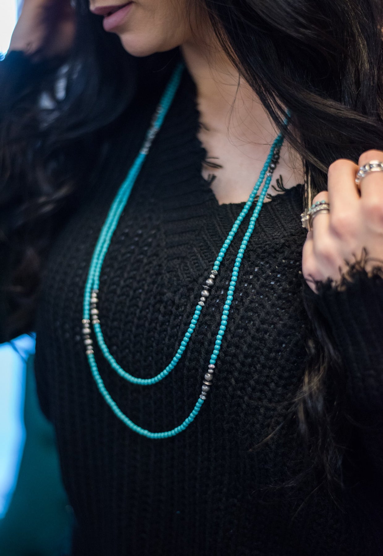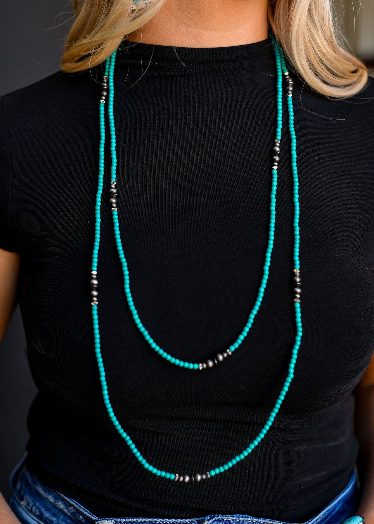 Ultra long turquoise beaded wrap necklace by West & Co. Wear long, create a choker, or layer with your favorite necklaces.