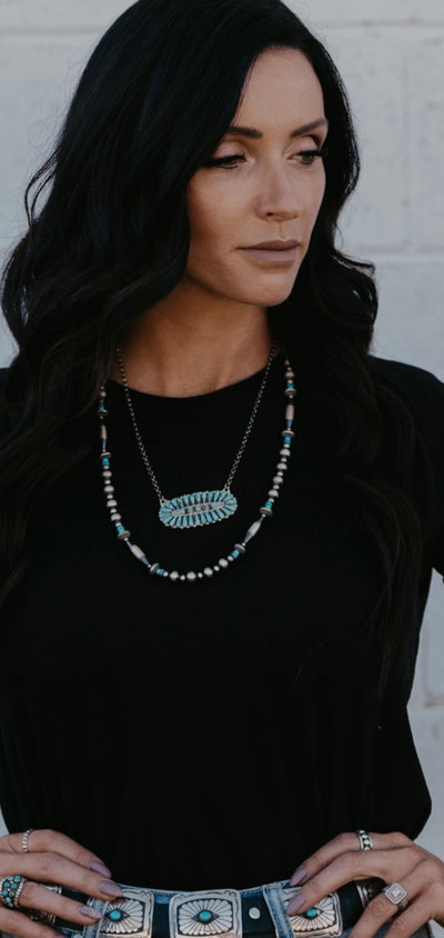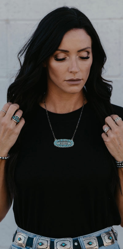 This gorgeous multi stone bar necklace is a timeless piece for anyone's turquoise collection. The detail and matrix in these stones are supreme!