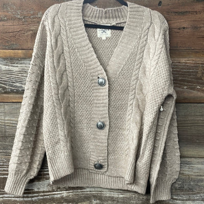 Hello western fall feels! A fun knit cardigan with button front, cactus details. Wear closed with your favorite tank underneath or open with a cute graphic tee.