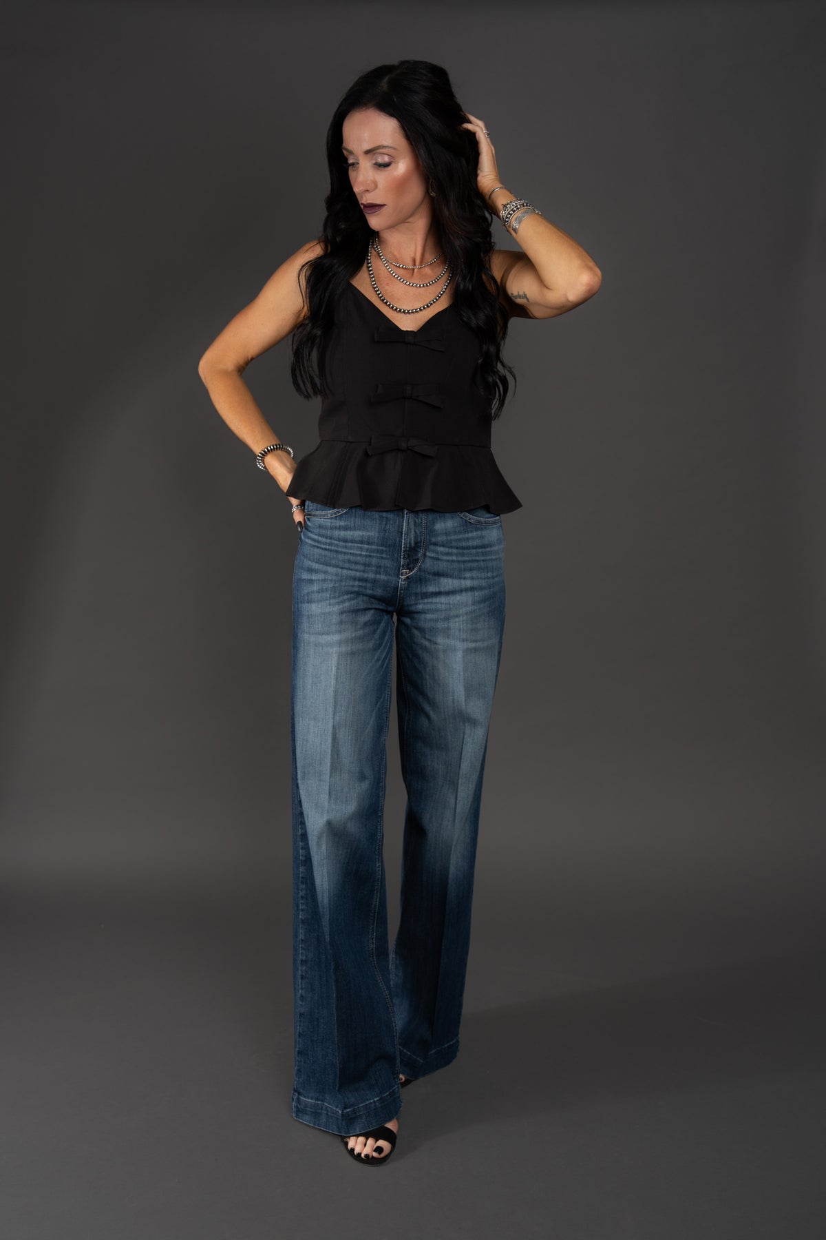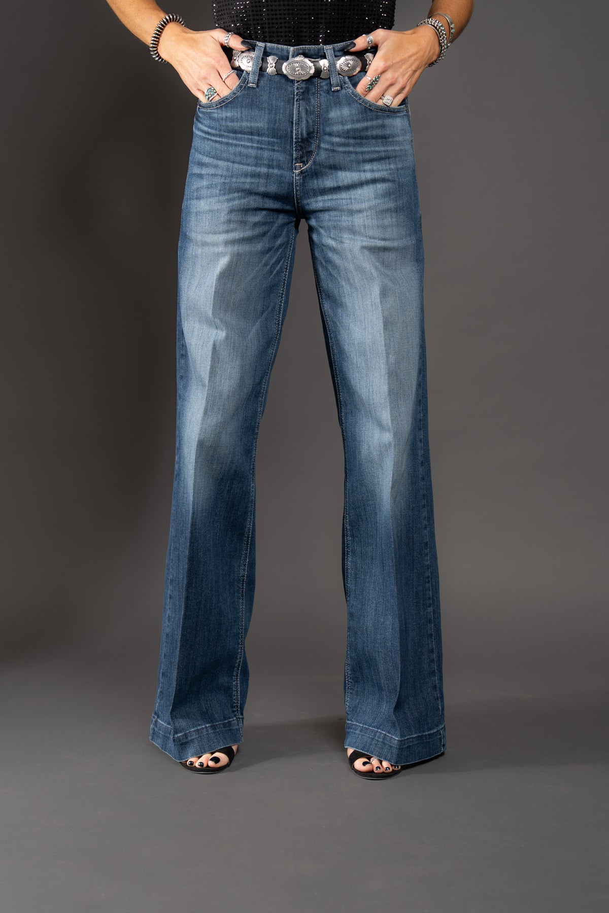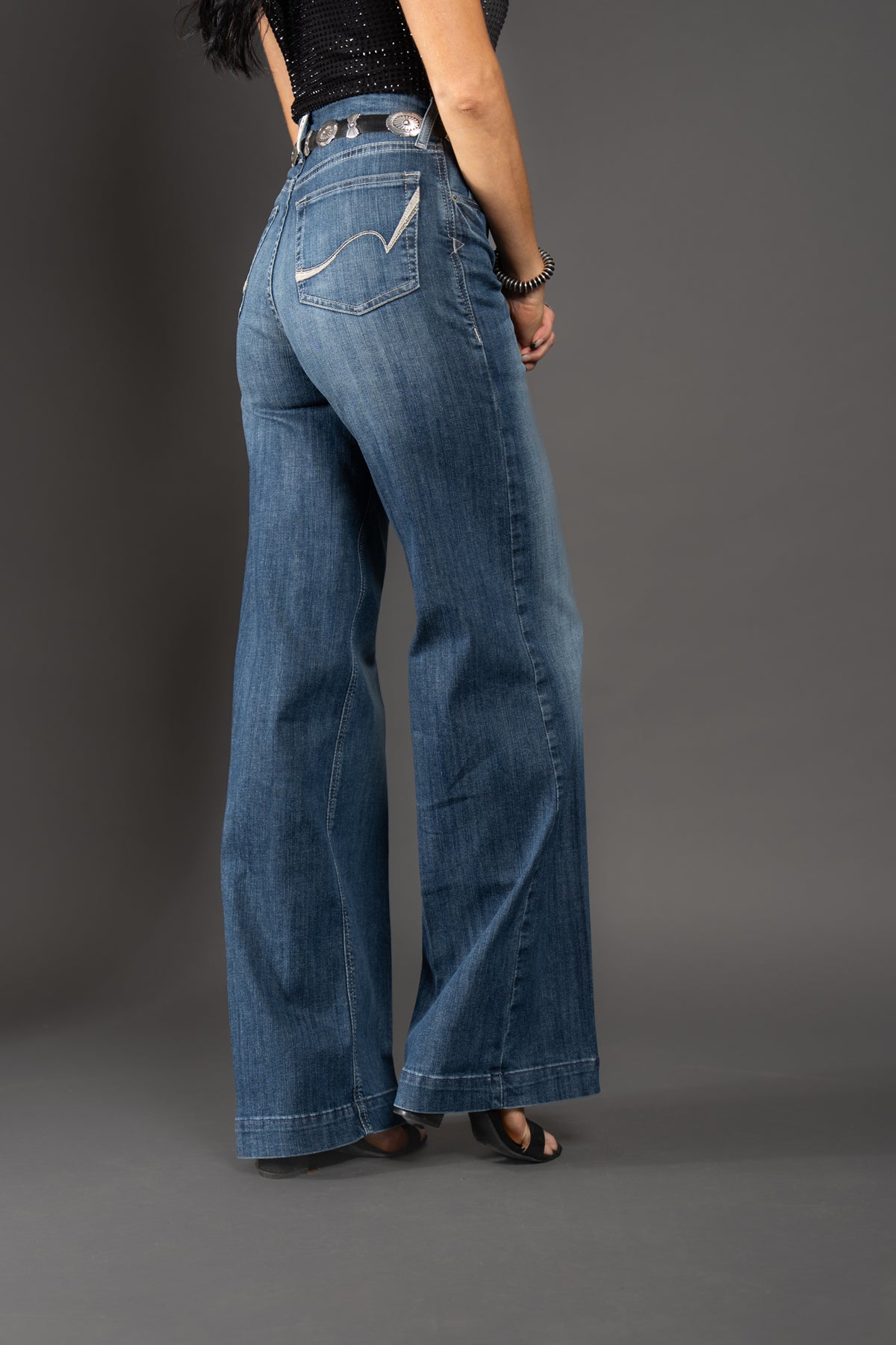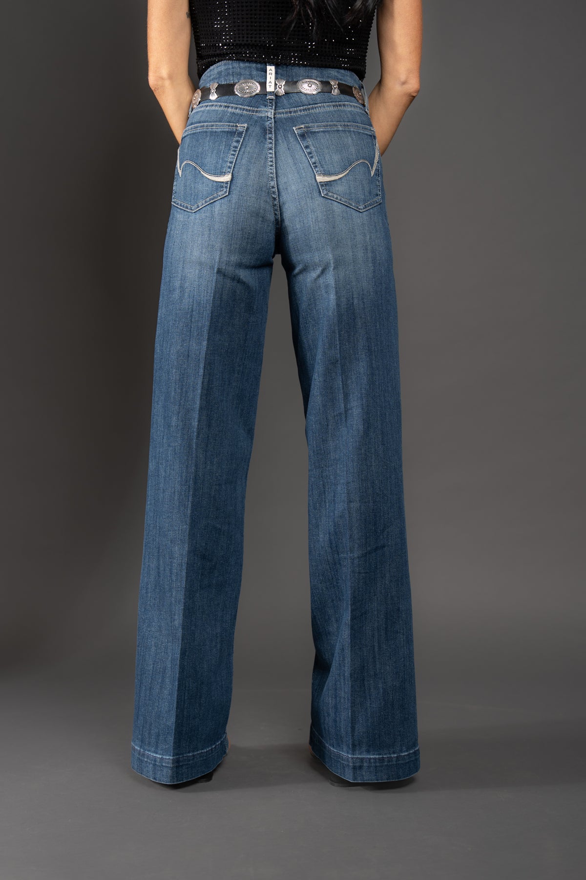 • Relaxed from the high thigh and widens to a 25.5" leg opening