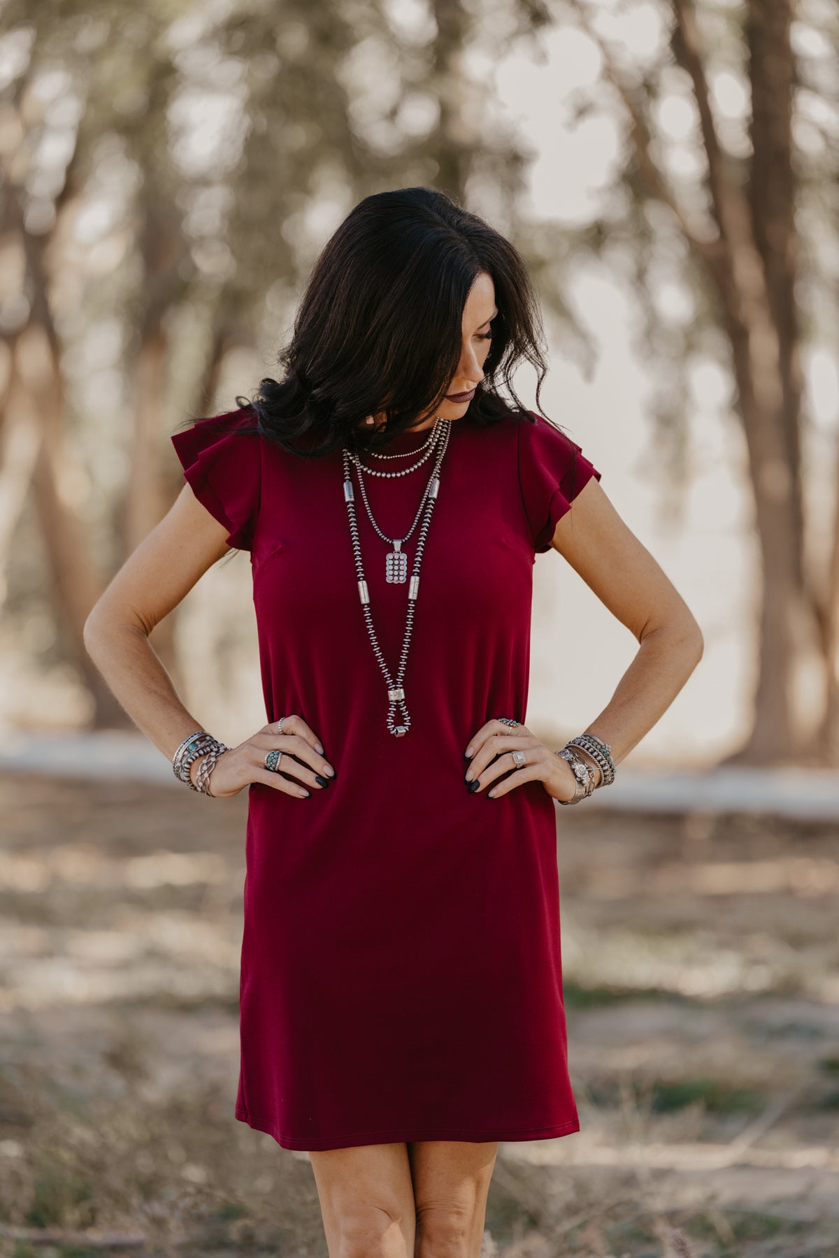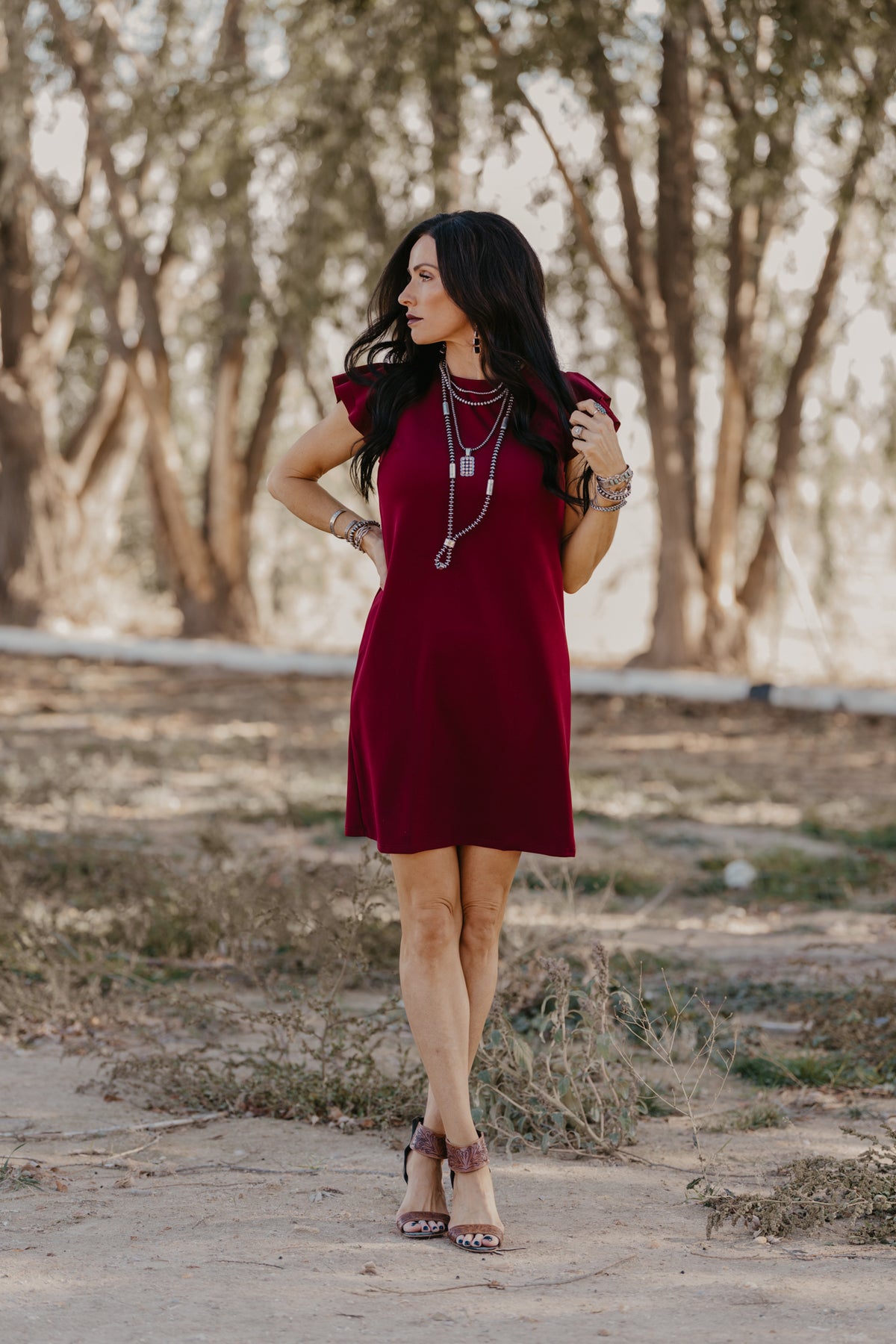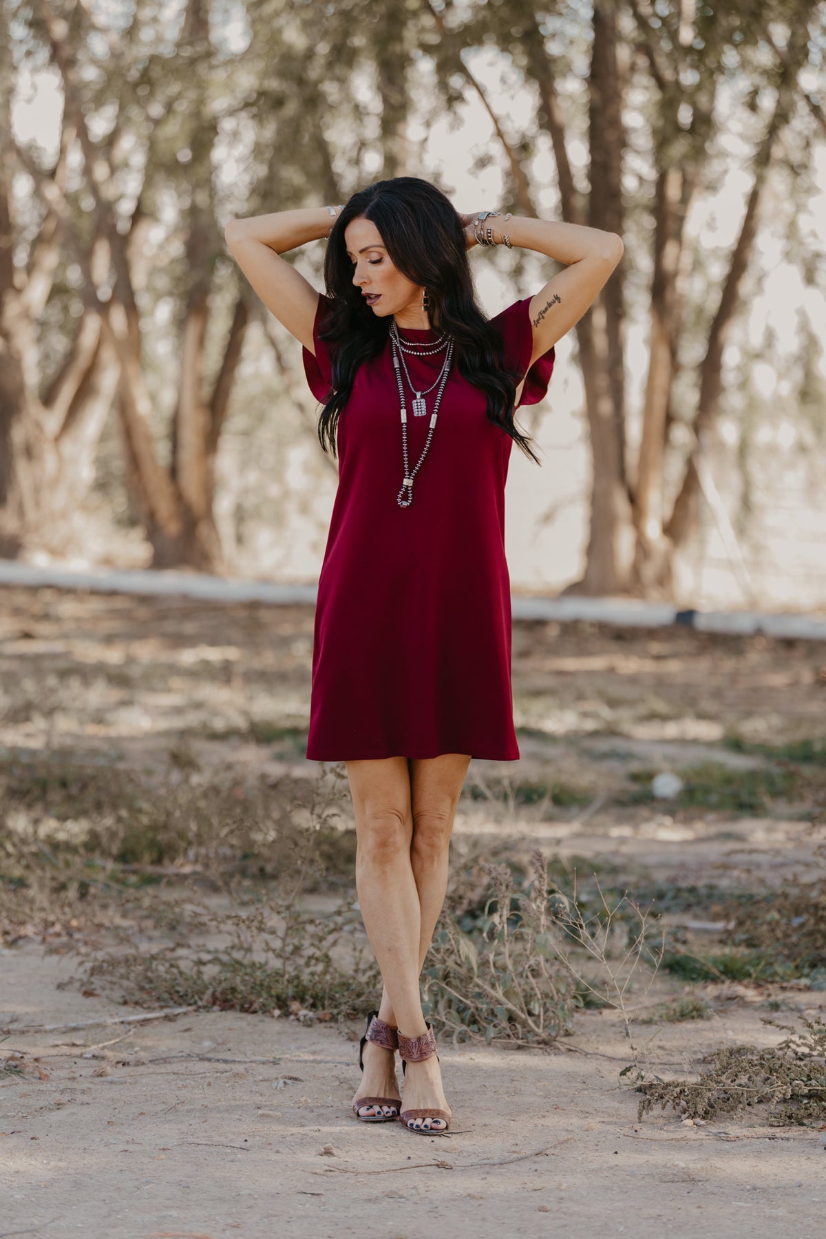 Swing dress style in the perfect wine shade. So many ways to style this little number.