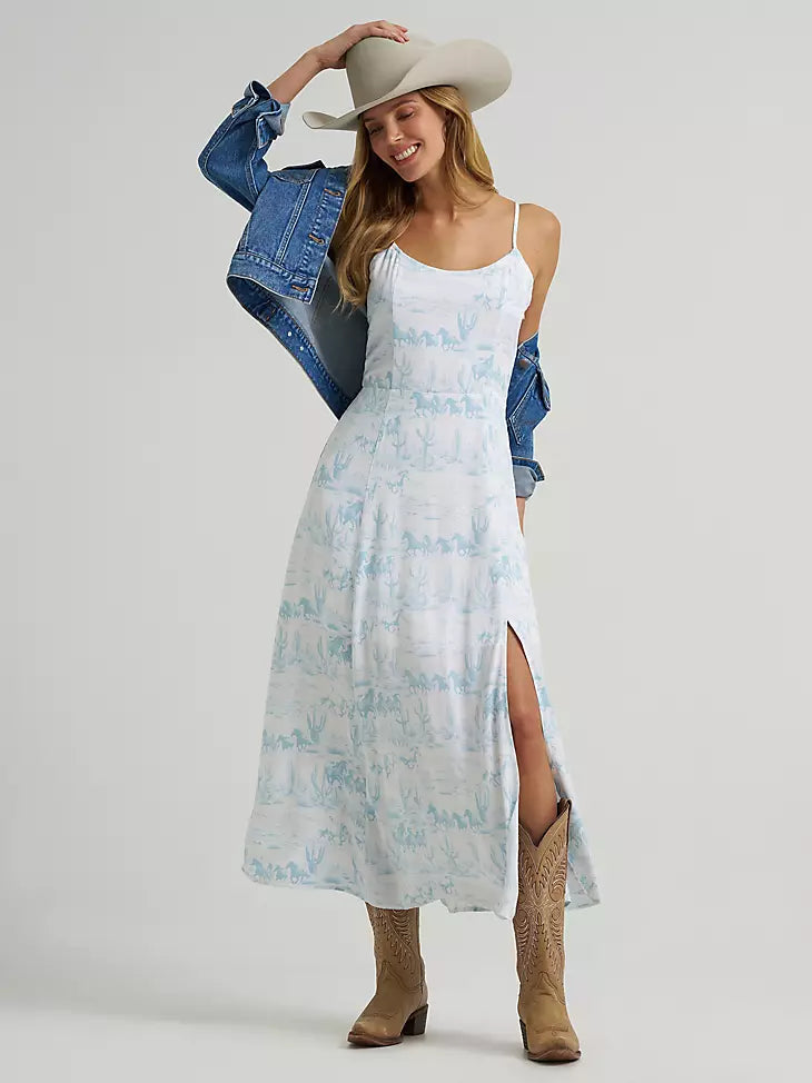 Perfect for all your spring and summer adventures, our Women’s Western Tank Maxi Dress will be the perfect choice for any occasion under the sun. This strappy dress features a fitted bodice with a smocked back and loose skirt with a slit for an extra playful look.