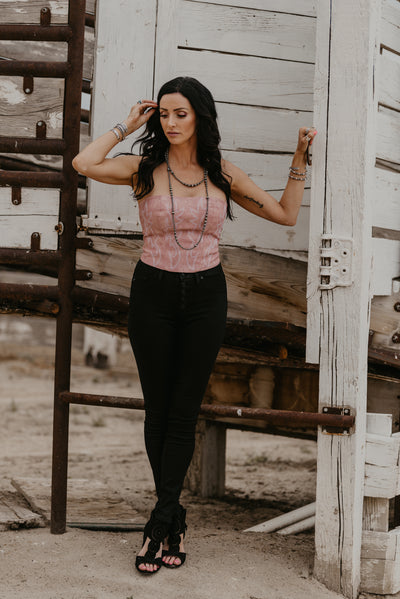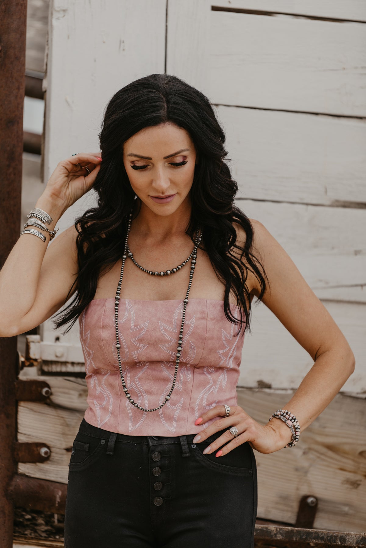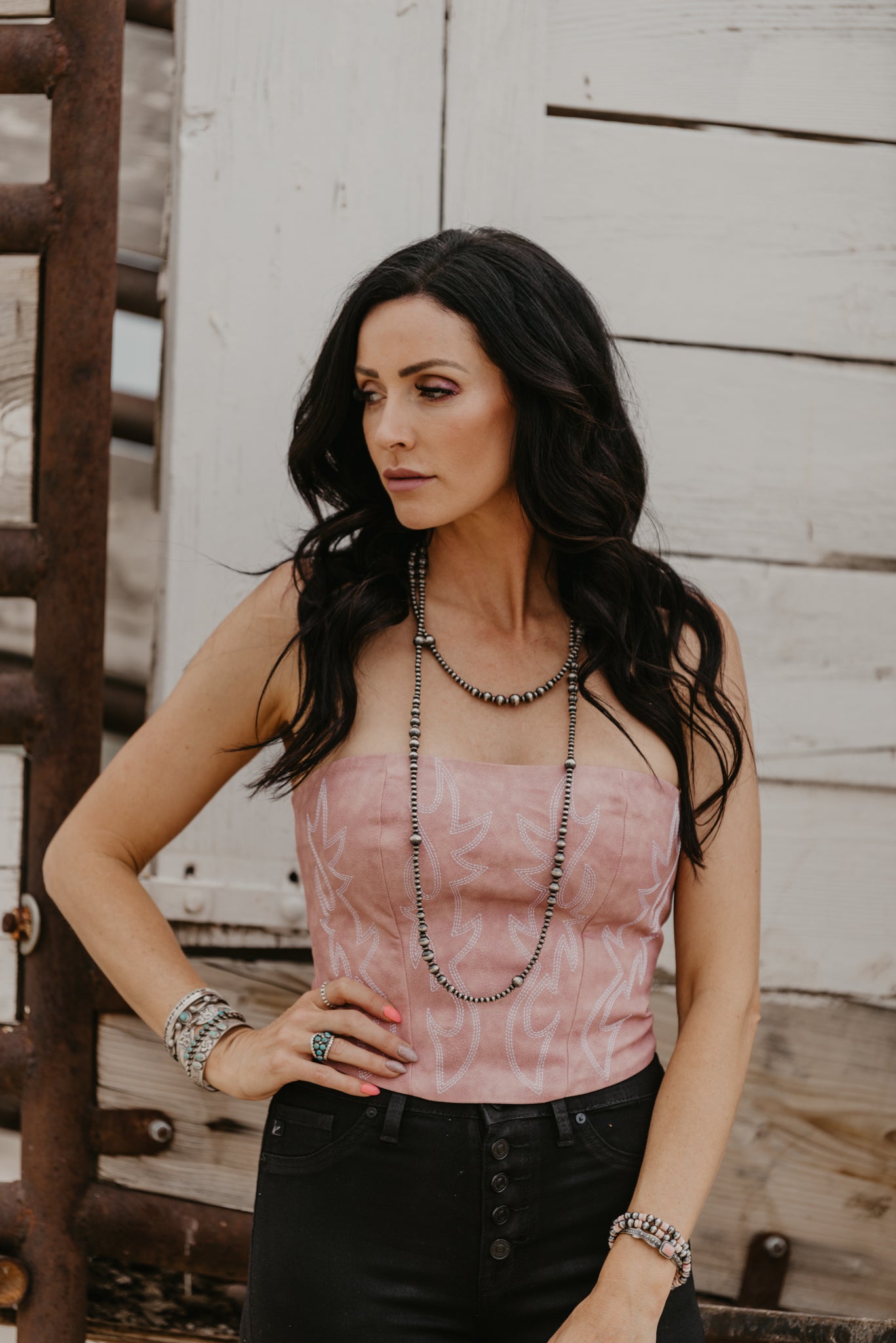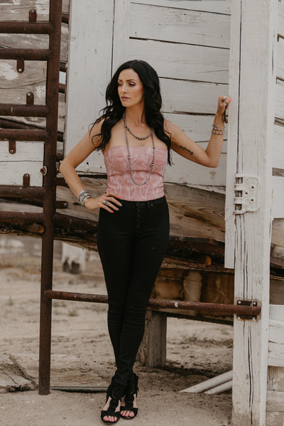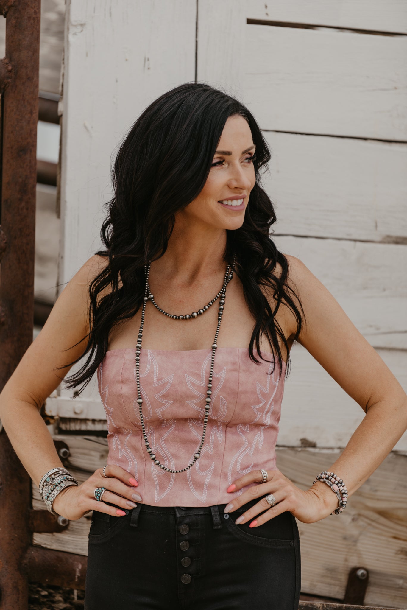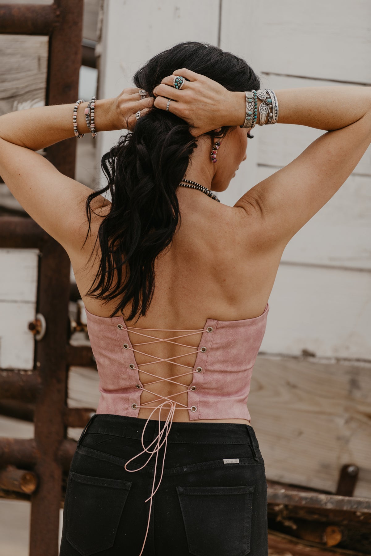 Corset style top with a western flair - peep that boot stitch detail. Full lace up back to ensure the best fit and comfort. Wear solo or pair over the top of your favorite blouse to create a layered look. Rodeos, music fests, and every event in between.