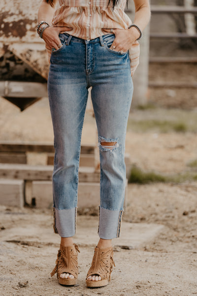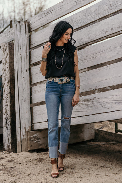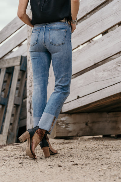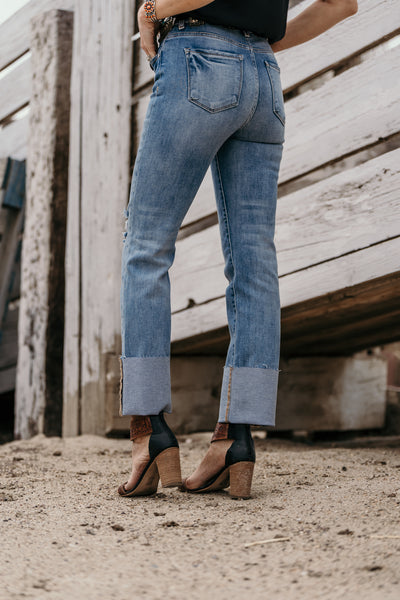 The perfect jean does exist! This has been one of our hottest sellers in our lives this year! High rise wide cuff straight jeans with the best stretch EVER!!