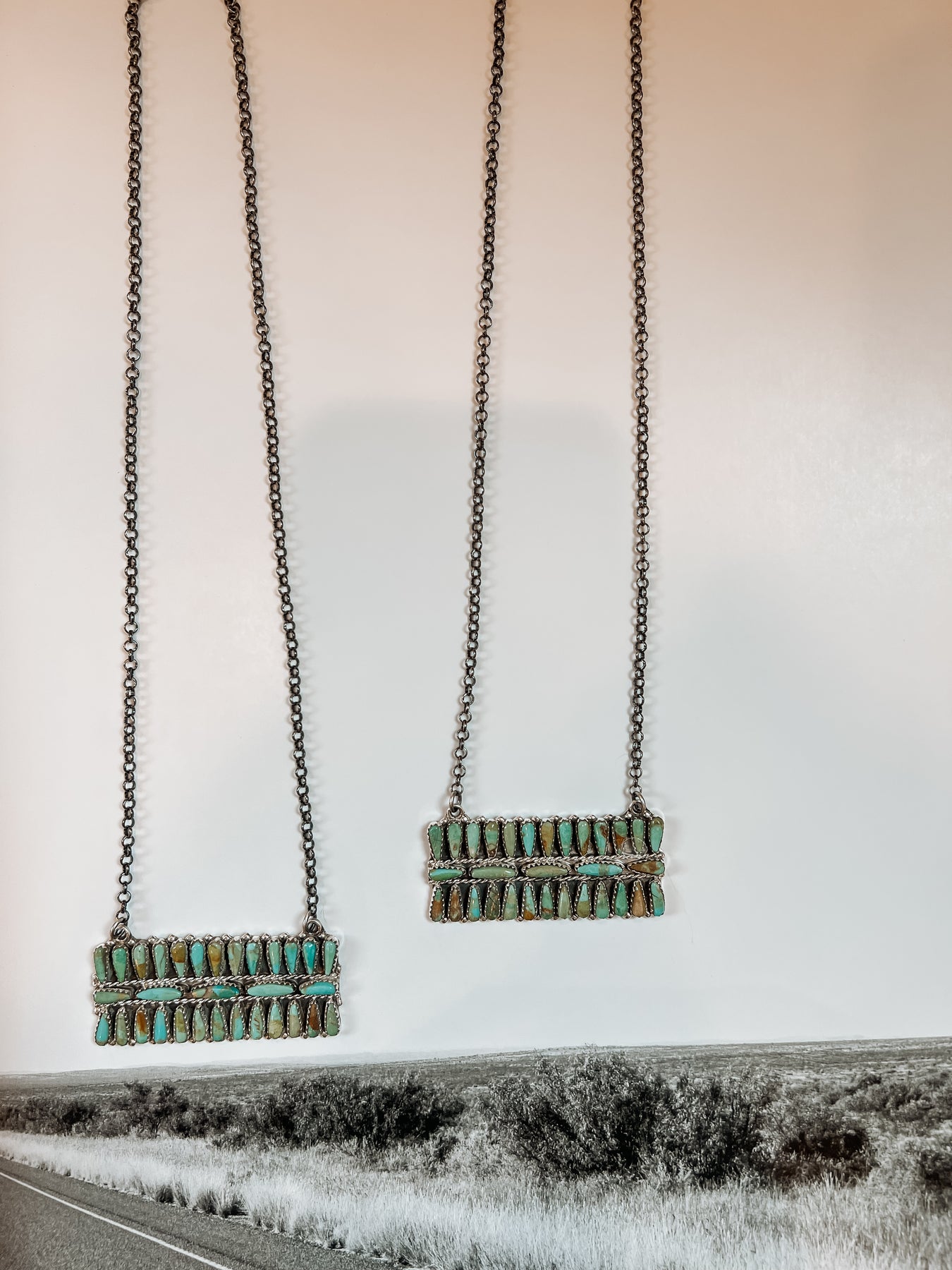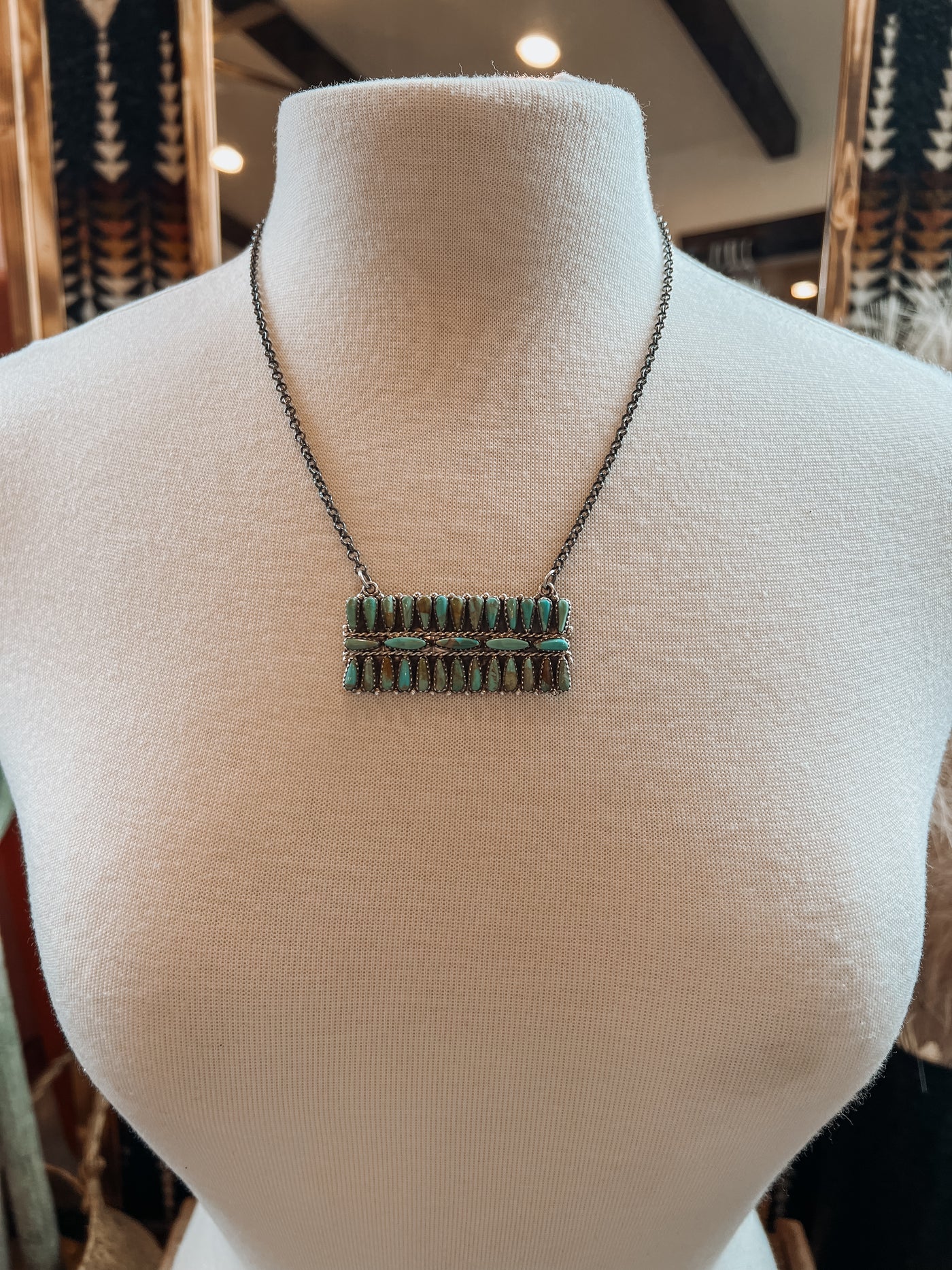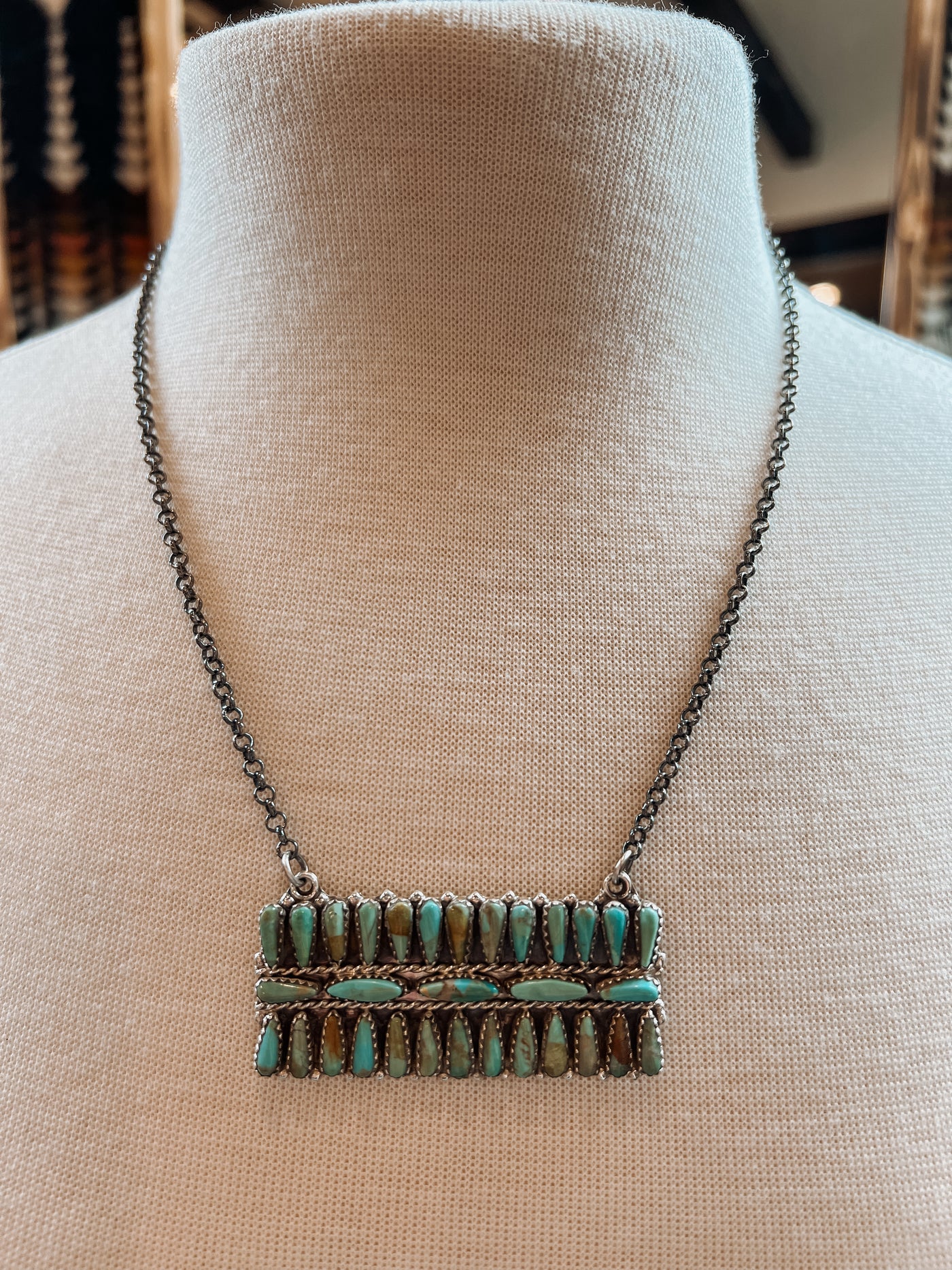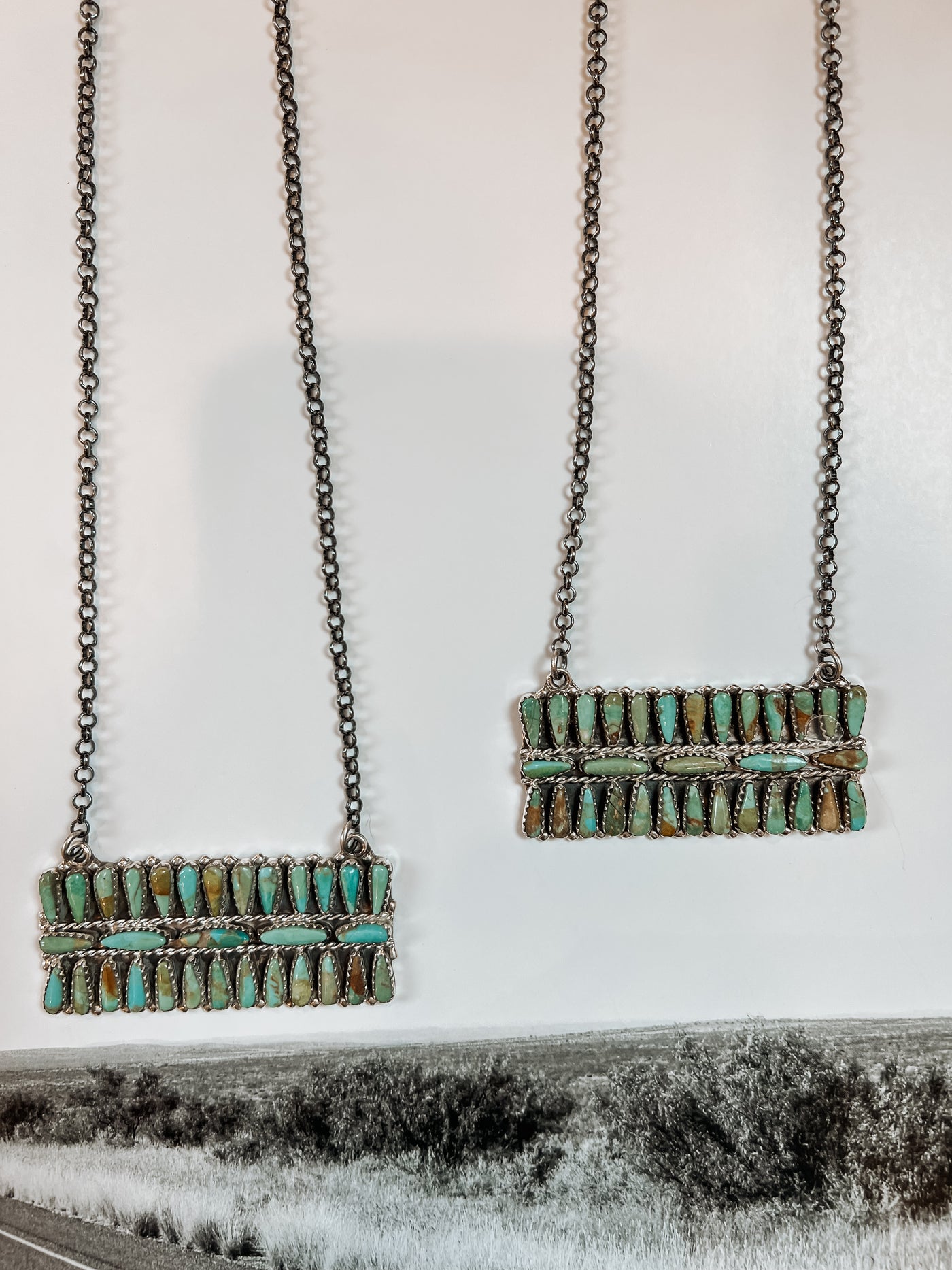 This gorgeous multi stone bar necklace is a timeless piece for anyone's turquoise collection. The detail and matrix in these stones are supreme!