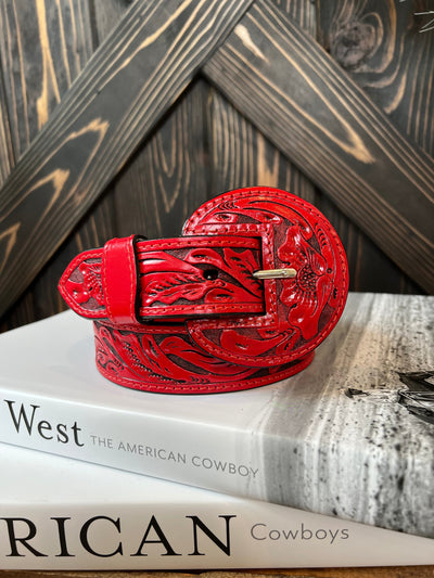 The Border Tooled Belt - Red
