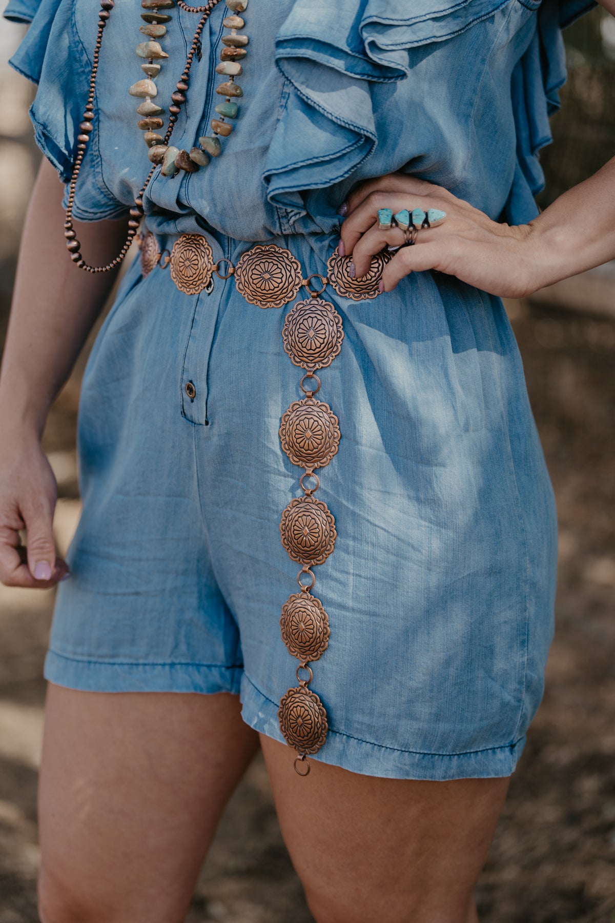 Measures (end to end) : 42" so it can easily fit any size. Wear high-waist or low across your hips, the belt is very versatile.
