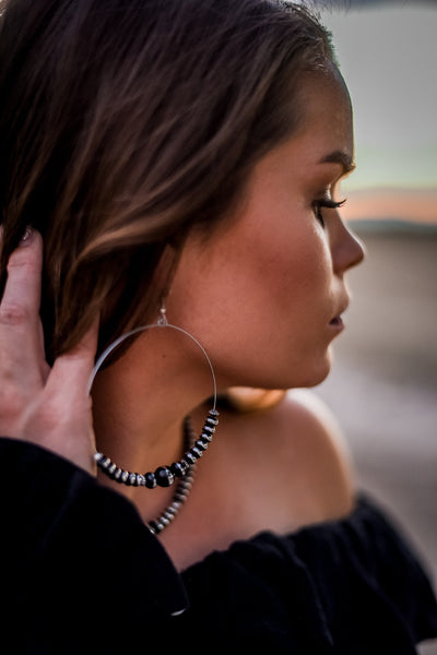 Made in the USA by West and Co this fun faux Navajo pearl beaded hoop earring has us swooning.