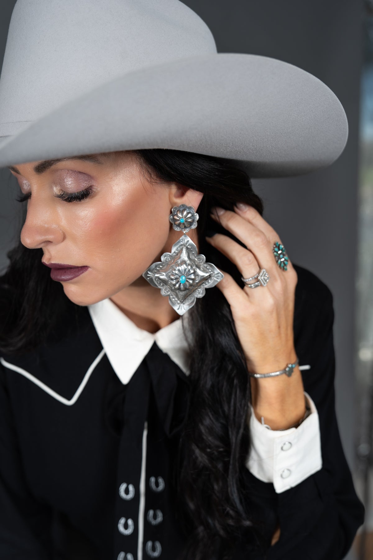 Hello gorgeous! These amazing earrings are such a statement piece and would be an amazing piece to add to your turquoise collection