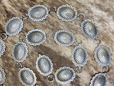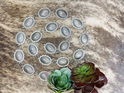 Measures (end to end) : 43" so it can easily fit any size. Wear high-waist or low across your hips, the belt is very versatile.