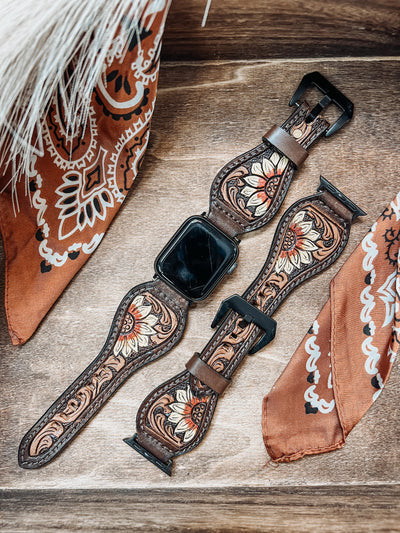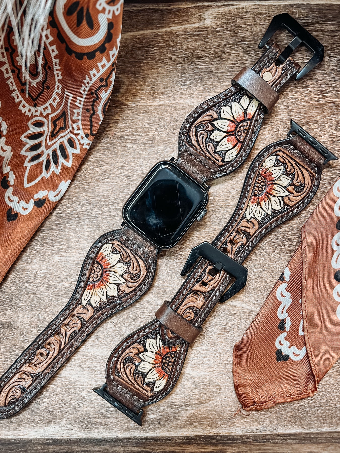 All leather smart watchband that will fit most smart watches. Easily kick your arm candy up a notch with these western inspired designs.