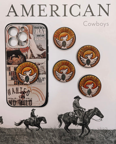 Let’s get western. Standard size phone grip. Sticky back with painted stamped leather design.