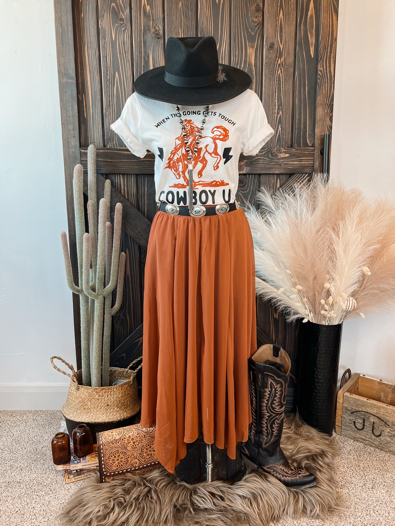 Items must be returned and received by Triangle T Boutique, PO Box 116, Marsing, Idaho, 83639, no later than 15 days from the date you received your order. Items must be returned in their original condition with all tags still attached, no signs or wear and tear, no makeup or present stains from trying the garment on (this includes hats), free from animal hair/scent, or cigarette smoke. You are responsible for the shipping cost on a return. All returns that meet the criteria are eligible for STORE CREDIT ONLY, we don't do exchanges. We cannot do exchanges within our shipping system because it does not allow us to create a shipping label. We have to have a pending order to fulfill within our system in order to create your shipping label, which is why you will receive store credit. Store credit does not expire and can be used towards the purchase of any item from our website. We encourage ladies to buy the correct item they desire while it’s available, rather than waiting for the store credit to post because we CANNOT guarantee your desired size will be available once we receive your return even though it was available when you sent it back. If you received free shipping, your credit will be the amount paid for the items LESS the shipping cost.